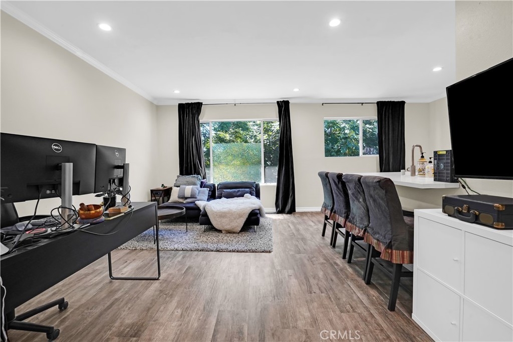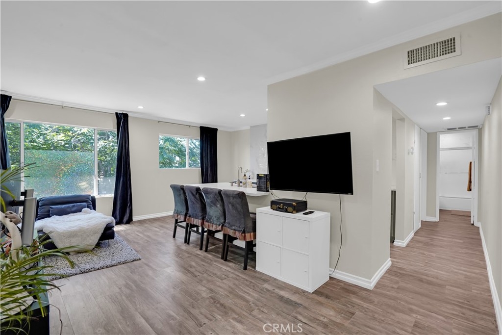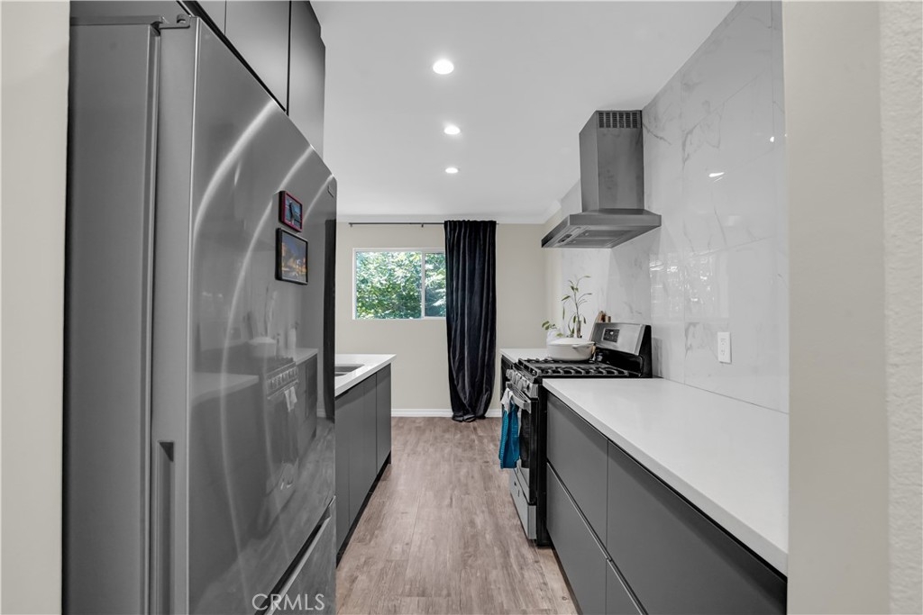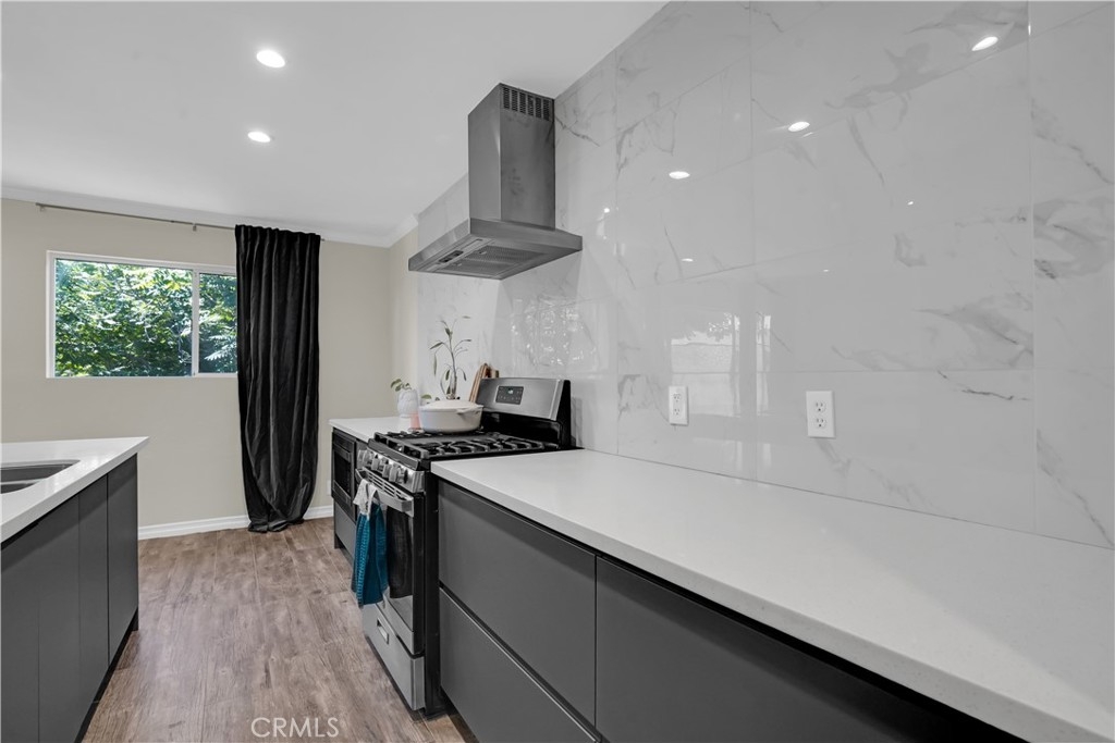 Centrally located near Westfield Topanga Mall, Business districts, and public transportation. Recently fully remodeled interior finish with new appliances; stainless steel gas range 4-burner, grill plate, quartz peninsula island, BI Microwave, S.S. Dishwasher, S.S Chef's hood, and soft close cabinets. New interior Paint (2022 popular colors of the year). New roof 2023.
