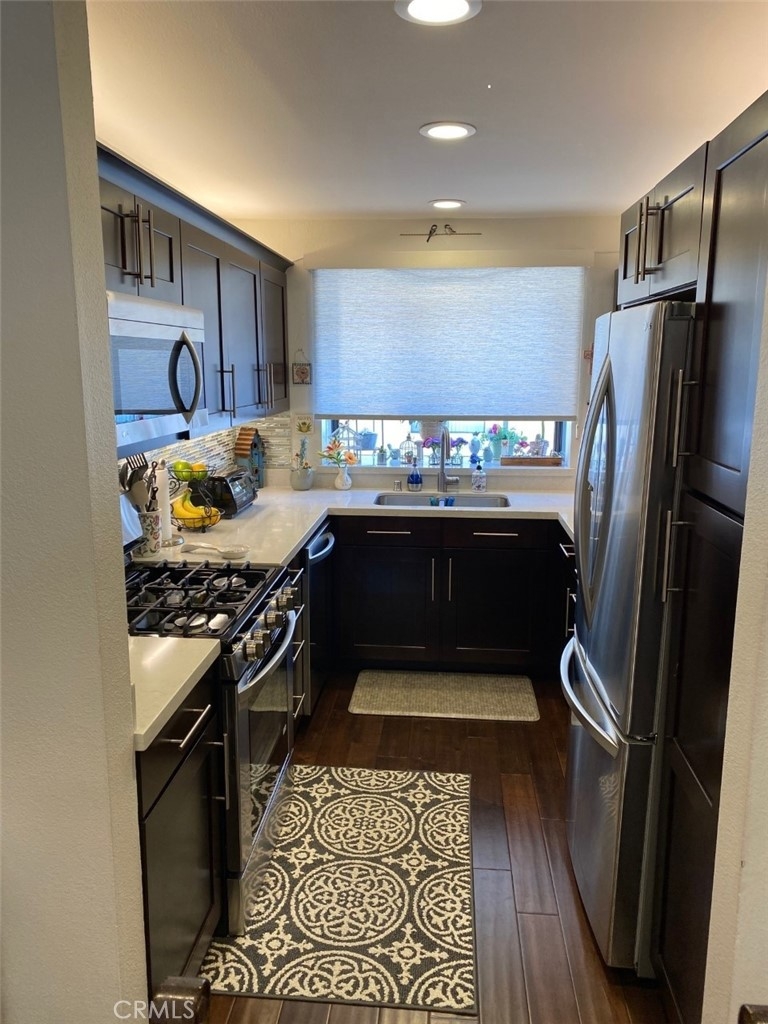 You better run to this beautifully upgraded, spacious townhome in a great area of Canoga Park....The seller has used only the finest high end materials throughout. Enter to high ceilings with recessed lighting, beautiful stackstone fireplace in the living room, hardwood flooring, gourmet kitchen with granite, custom cabinetry, and greenhouse window letting in plenty of light. One bedroom and bath on main level (with a gorgeous shower)....Upstairs are two more bedrooms including a master with vaulted ceilings, cozy fireplace, huge walk-in closet, and full bath. Additional bedroom also has it's own private bath. Oversized attached 2 car garage and HUGE storage area. Private patio overlooking the sparkling pool..... This unit is in the best location in the complex, quiet and private. Truly the most beautiful unit in this price range available....DON'T WAIT!!!