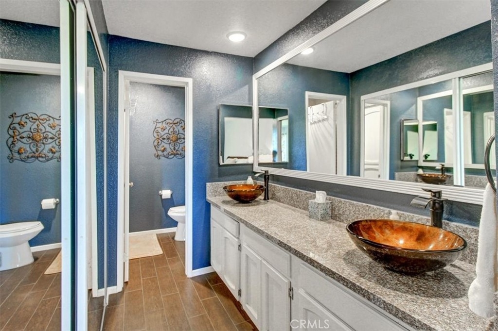 Owner relocating Rare 2 bedroom and 2 bath near Warner Center this unit includes your own private detached garage, large living room with a cozy fireplace overlooking trees and mountains. Newer Ceramic Wood like flooring throughout, kitchen features granite counters, stainless steel appliances and a large window that is rare at this complex next to the dinning area, both baths are redone with designer sinks, upgraded shower, granite counters,Master bath has double sinks. The ample sized master bedroom has 2 closets. This home also comes with inside laundry with approximately year old washer and dryer maybe included. was painted also aprox. 2 years ago. Complex features resort styled pool and tennis.