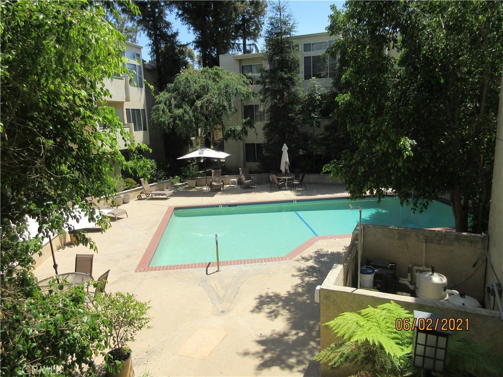 Wonderful 2 bedroom condo with easy access to EVERYWHERE! This has a great layout with 2 bedrooms on opposite sides and kitchen, living room and dining area in the middle. Enter the unit to find a good sized dining area and kitchen with gas range and breakfast bar. Continue to the large living room with a brick corner fireplace and access to the balcony that overlooks the plush common area and community pool and spa. The master bedroom shares the balcony and has a dual sink vanity, large mirrored closet and private toilet and tub/shower. The 2nd bedroom on the other side is just a few steps from the 2nd bathroom and right by the closet with stackable washer and dryer. This unit is located a quick walk from the elevator. The 2 car tandem carport parking is also close to the elevator. Everything about this unit is convenient!