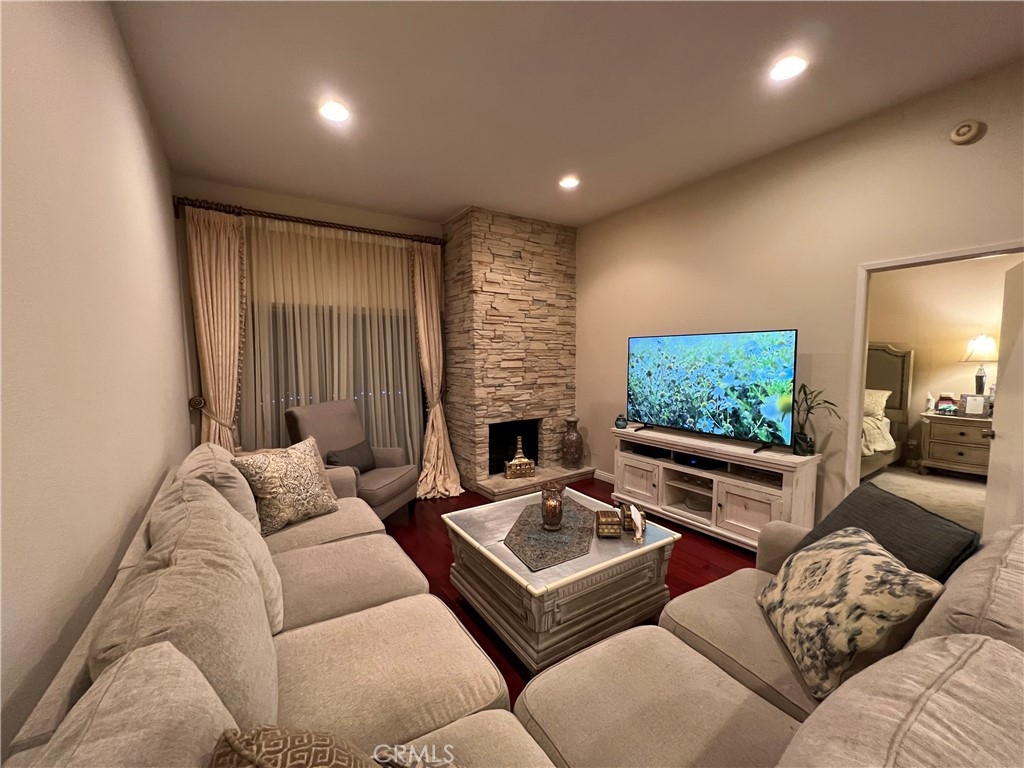 Conveniently located two-bedroom condo right in between the 101 and the 118 freeways. This corner unit is located on the top floor with very high ceilings and two full bathrooms. Home features Patagonian Rosewood floors throughout the main living area and a lovely terrace overlooking the pool. The spacious master with in-suite features his and her closets, while the kitchen has beautiful granite counter tops and a wine fridge. Newer AC unit. Detached garage allows for ample storage. Gas fireplace in the living room adds cozy feel. Washer and dryer in unit. Very close to the Topanga Mall and Fallbrook Center. Short scenic drive through Topanga to Malibu. Community pool, jacuzzi and tennis court. Perfect starter home.