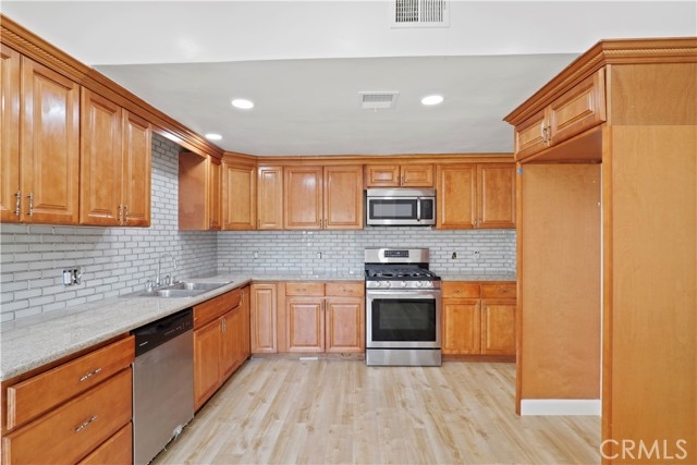Remodeled 3 bedroom 3 bathroom Canoga Park Townhouse with direct access attached garage and laundry hook ups inside. The property features include Living room, dining area, remodeled kitchen with granite counter tops, recessed lighting, and stainless steel appliances and a breakfast nook. Newer laminate flooring, newer paint, and ceiling fans in the upstairs 3 bedroom. The property offers a bonus room downstairs as well as a bathroom downstairs. Close to shopping and easy freeway access.