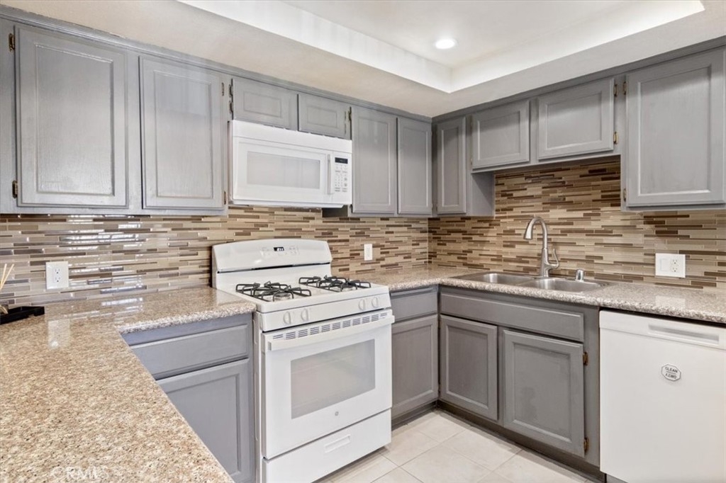 Immaculate bottom floor condo unit, perfect for any type of buyer. North facing windows get fantastic light during the day without letting too much heat in. Convenient washing machine hookups in unit means no more trips to the community laundromat. Both bedrooms have very spacious closet space, with main bedroom having his and hers closets. Both bathrooms have full size tubs. Outside patio is fantastic for summer barbecuing. New paint and flooring throughout. Kitchen boasts new granite countertops, stainless steel sink as well as brand new appliances. Living room, with cozy fireplace, flows right onto open dining room and kitchen. New ceiling fans, bathroom fixtures, vanities, exhaust fans, and mini blinds. There are 2 covered tandem parking spaces as well as covered guest parking. The complex has a pool and spa as well as additional storage area. HOA covers water, sewer, trash, basic cable and internet.