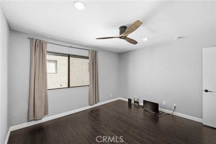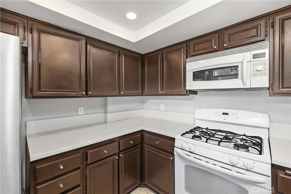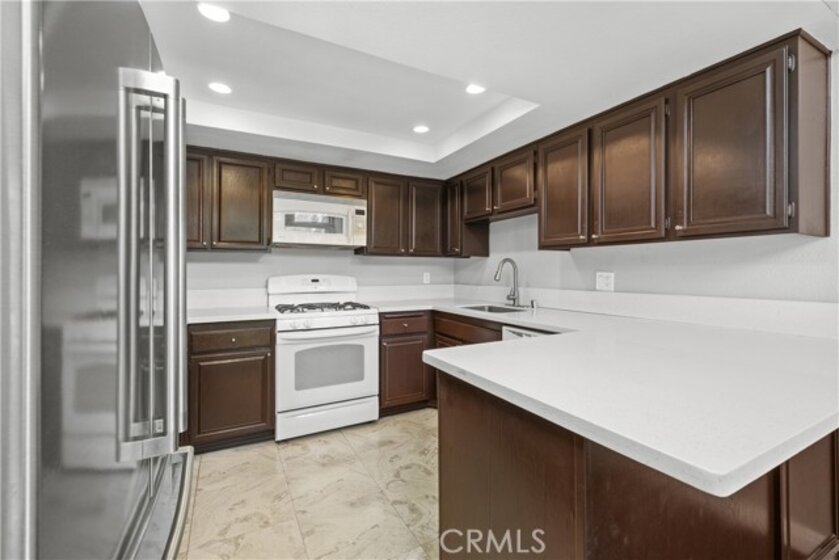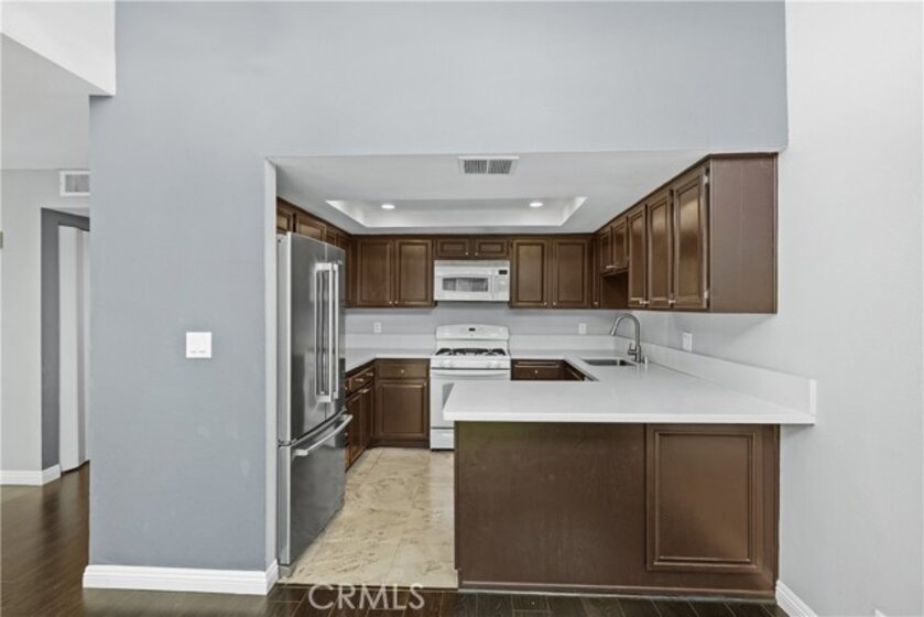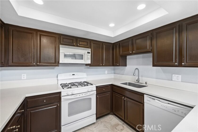 Price Improvement in Excellent Community! Own vs. Rent – No Sticker Shock HOA! Discover this turn-key top-floor condo in a park-like, quiet, and secure community. Surrounded by lush landscaping and thoughtfully managed grounds, this residence offers comfort, convenience, and style. Step inside to soaring vaulted ceilings, large windows that flood the home with natural light,an open floor plan, and extensive upgrades completed in recent years. Features include: Dark hardwood flooring and modern grey tones throughout, Quartz kitchen countertops and recessed lighting, Spacious master bedroom with his-and-her closets, large linen closet cabinets, In-unit laundry hookups (no community laundry hassles!), extra storage closet, & large semi private balcony to enjoy summer evenings with BBQ grill included. The community offers a pool and spa, plus 2 covered tandem parking spaces and additional guest parking. HOA dues include water, sewer, trash, basic cable, and internet — value! All appliances are newer (less than 5 years old), making this a move-in-ready home. A fantastic opportunity for first-time buyers or those looking for a low-maintenance lifestyle who place a premium on living in a tranquil, secure, and well managed community!