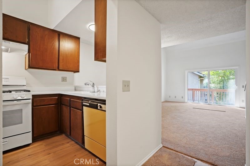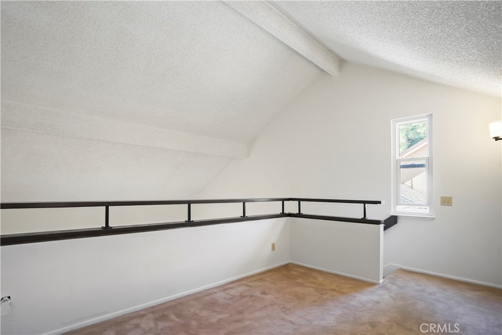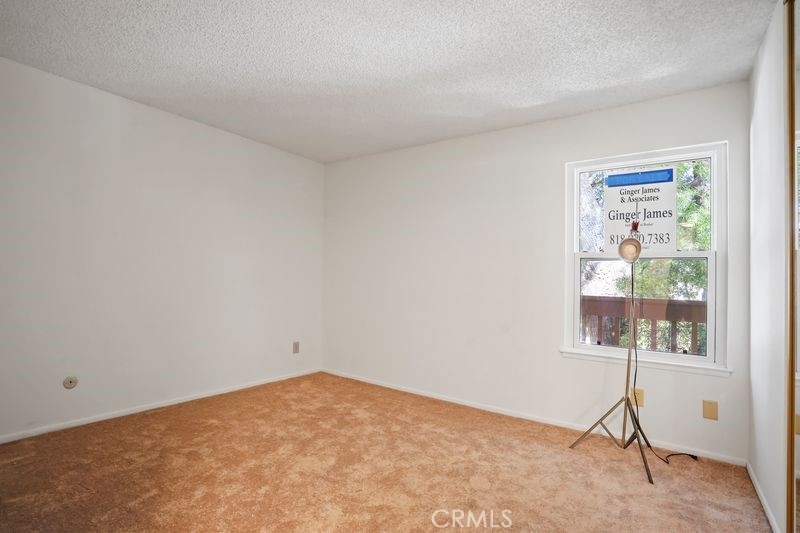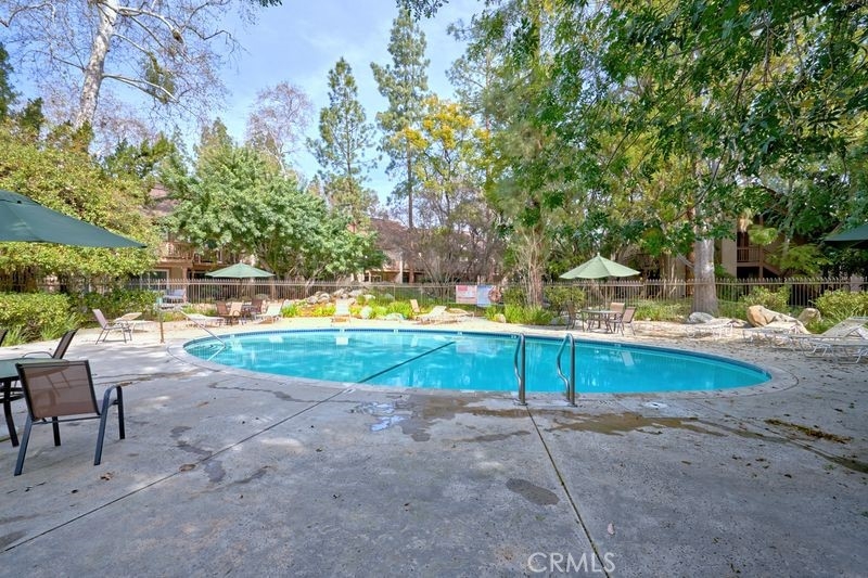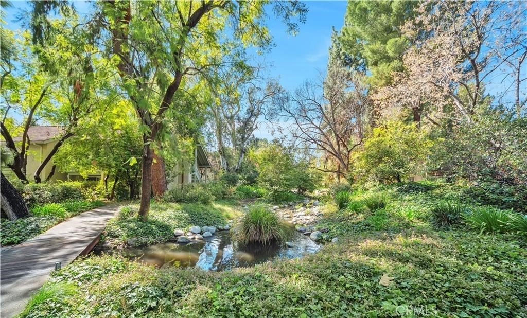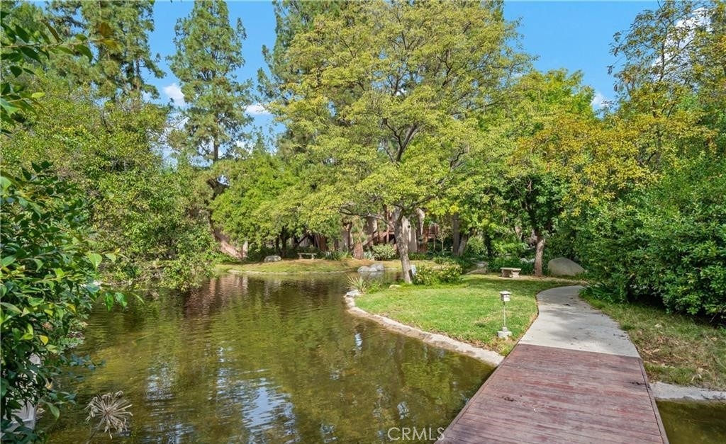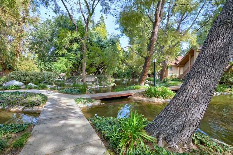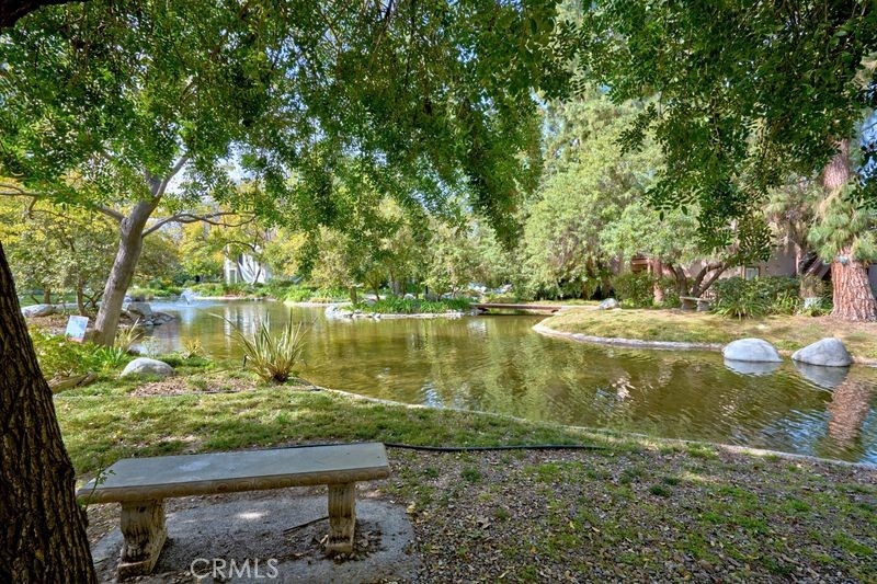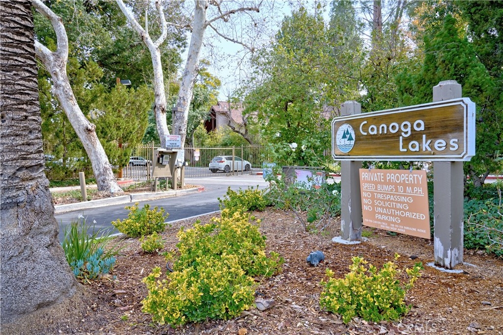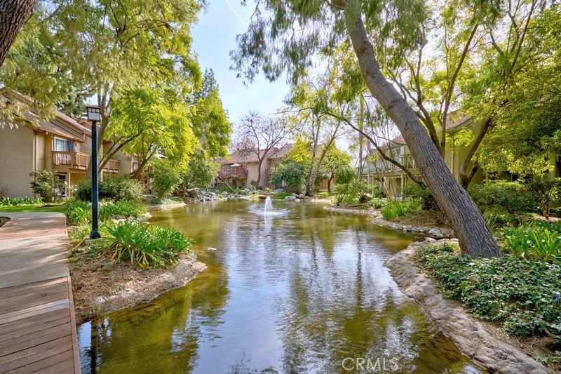 Nestled within the gated community of Canoga Lakes, this upper-level unit offers a serene escape surrounded by lush landscaping, mature trees, and a picturesque lake view. The complex boasts meandering walkways, lakes, streams, waterfalls, and an abundance of wildlife, creating a sanctuary of tranquility Residents can enjoy a variety of amenities, including tennis courts, pools, spas, saunas, and a fitness room. The unit itself features one bedroom with a loft, which can serve as an office or additional sleeping area. The property features an upgraded bathroom, newer carpet, fixtures, and an updated electrical panel. The kitchen includes a refrigerator and stove, and there are washer and dryer hookups (washer and dryer not included). Additionally, the unit has a private balcony with stunning views.