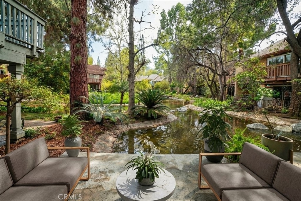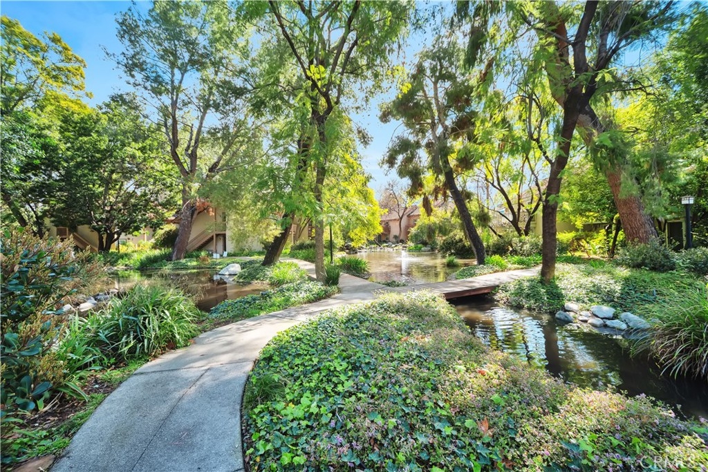 Amazing Canoga Lakes - Enjoy stunning views of streams and breathtaking landscapes in this beautifully upgraded downstairs one-bedroom unit at Canoga Lakes. The unit is in a prime spot within the complex, featuring an outdoor patio perfect for soaking in the peaceful surroundings. Inside, you'll find impressive upgrades like gorgeous wood floors, a completely renovated bathroom, and a modernized kitchen. It comes with two convenient parking spots and is located on the first floor with no stairs. The HOA offers fantastic amenities, including two sparkling pools, two Jacuzzis, a fitness room, lighted tennis courts, and 18 acres of walking paths, lush greenery, and serene sitting areas to take in the scenery. Canoga Lakes is in a lively area close to transportation, hospitals, excellent dining, and entertainment options. You're also near "The Village," Topanga Plaza, Fallbrook Mall, Malibu Wines, and much more. This is a perfect place to unwind and enjoy life—you’ll absolutely love living at Canoga Lakes.