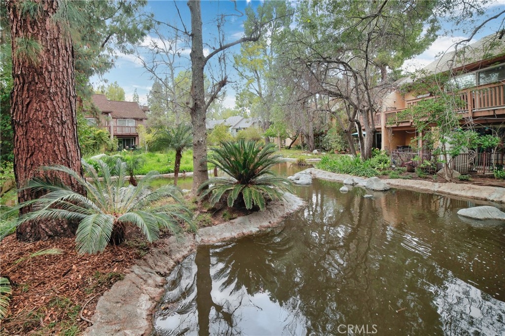 Enjoy stunning views of streams and breathtaking landscapes in this downstairs one-bedroom unit at Canoga Lakes. The unit is in a prime spot within the complex, featuring an outdoor patio perfect for soaking in the peaceful surroundings. Inside, you'll find impressive upgrades like gorgeous wood floors, a completely renovated bathroom, and a modernized kitchen. It comes with two convenient parking spots and is located on the first floor with no stairs. The HOA offers fantastic amenities, including two sparkling pools, two Jacuzzis, a fitness room, lighted tennis courts, and 18 acres of walking paths, lush greenery, and serene sitting areas to take in the scenery. Canoga Lakes is in a lively area close to transportation, hospitals, excellent dining, and entertainment options. You're also near "The Village," Topanga Plaza, Fallbrook Mall, Malibu Wines, and much more. This is a perfect place to unwind and enjoy life—you’ll absolutely love living at Canoga Lakes.