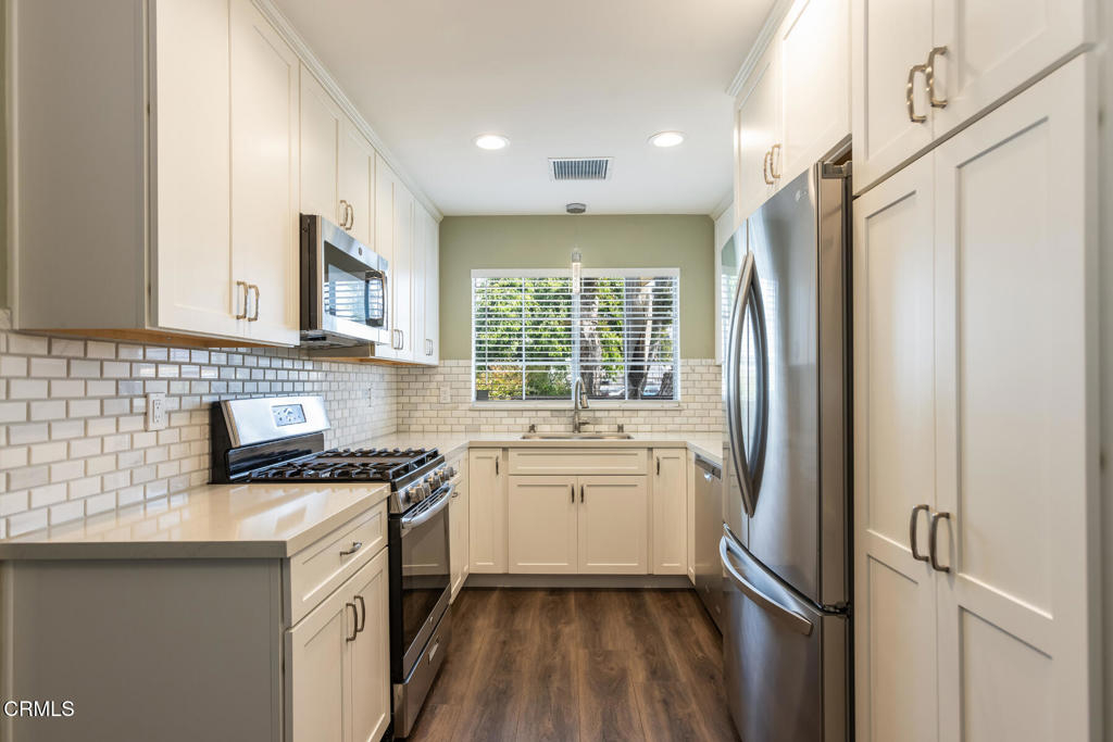Welcome to this beautifully updated 2-bedroom, 3-bathroom townhome in the heart of Canoga Park, offering a perfect blend of comfort and updated living. The inviting living room features updated flooring, a cozy brick fireplace, and flows effortlessly into the dining area and open concept kitchen. The updated kitchen is equipped with stainless steel appliances and plenty of natural light. Upstairs, the primary suite boasts vaulted ceilings, a charming bay window nook, and an en-suite bathroom with a double vanity and stylish finishes. Enjoy the convenience of an attached two-car garage with direct access to the townhome, in-unit laundry, and a private front patio. A highly sought after community with amenities such as a sparkling pool and spa, tennis court, and beautifully maintained grounds. Ideally located near Located near Westfield Topanga, The Village, parks, restaurants, and public transportation-this turnkey home combines style, function, and an unbeatable location.