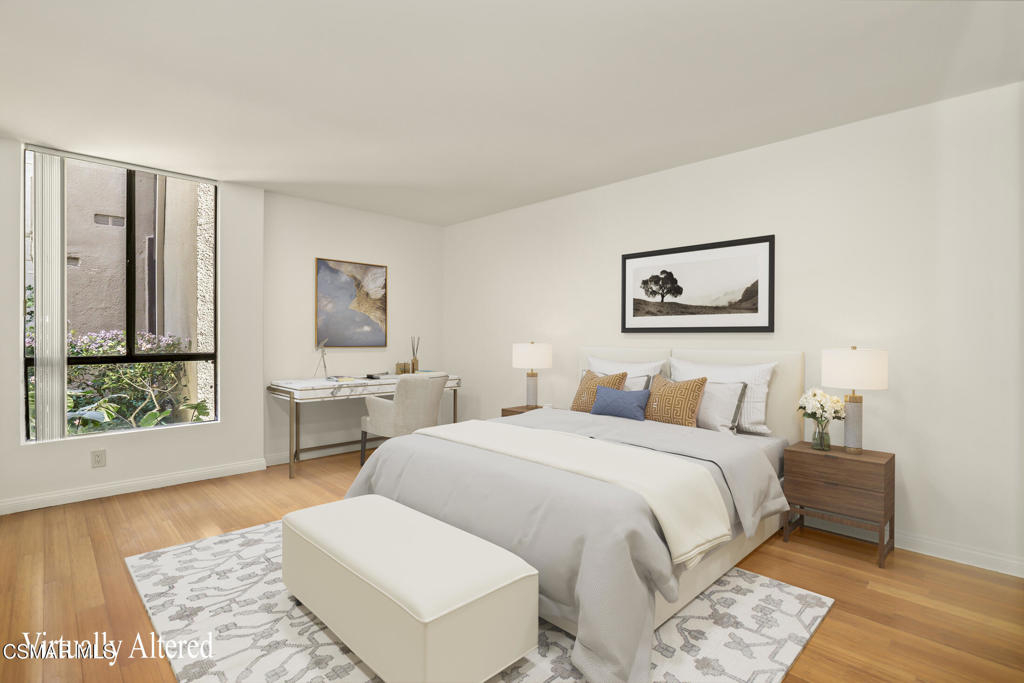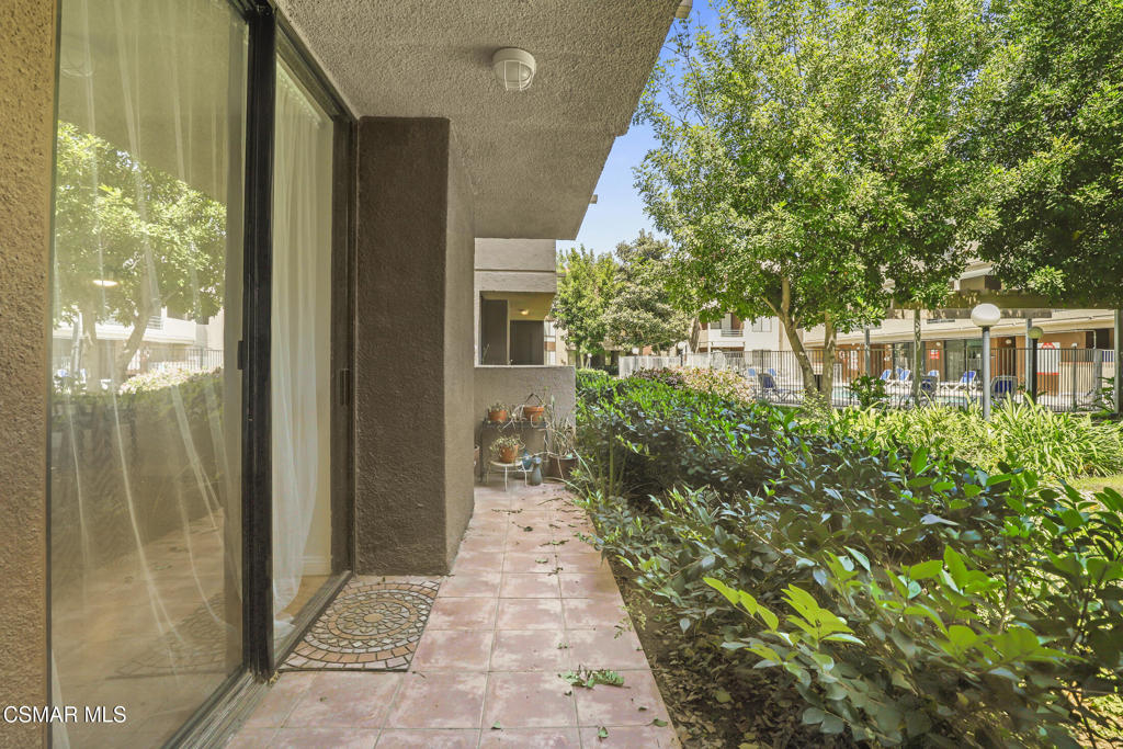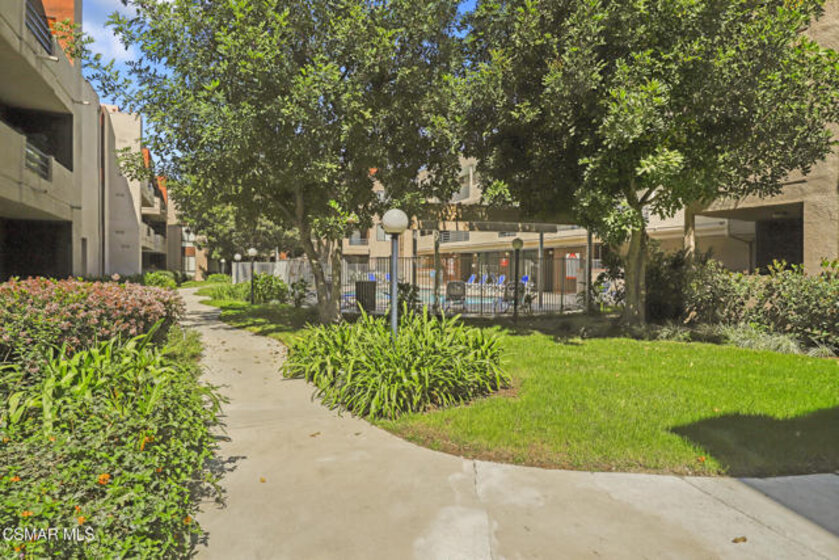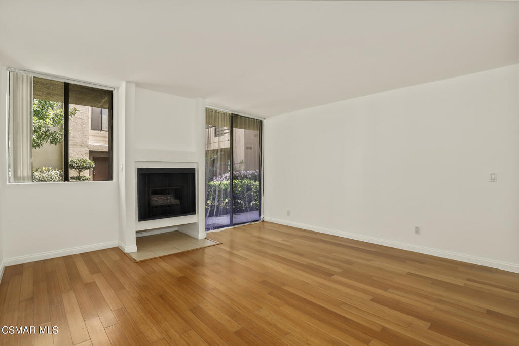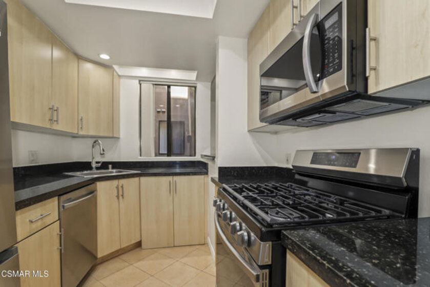 WOW! Welcome to this beautiful single-story condo in the highly desirable gated Elkwood Terrace Community. This renovated first floor 2-bedroom Condo boasts a freshly painted interior, bamboo flooring, ceiling fans, modern fireplace in the living room, updated bathrooms and large windows throughout bringing in natural light. The charming kitchen features granite countertops, custom cabinets, stainless-steel appliances, and a dedicated space for an European style washer/dryer combo. The Elkwood Terrace community offers resort-style amenities, including lush green landscaping, a community pool/spa, fitness center, controlled access to the building, elevator, guest parking, and a community laundry area. Reserved tandem parking for two vehicles is provided: space #79. The HOA also covers water, trash, landscaping, and earthquake insurance. Perfectly located near Warner Center in Woodland Hills, Westfield Topanga, The Village, Costco, Movie Theaters, Warner Park, Fallbrook Mall, restaurants, easy access to the 101 and 118 freeways and so much more! Great Location! Great Opportunity! Don't Miss Out!
