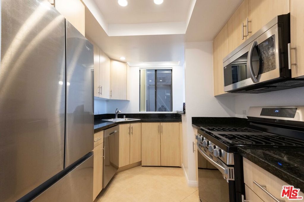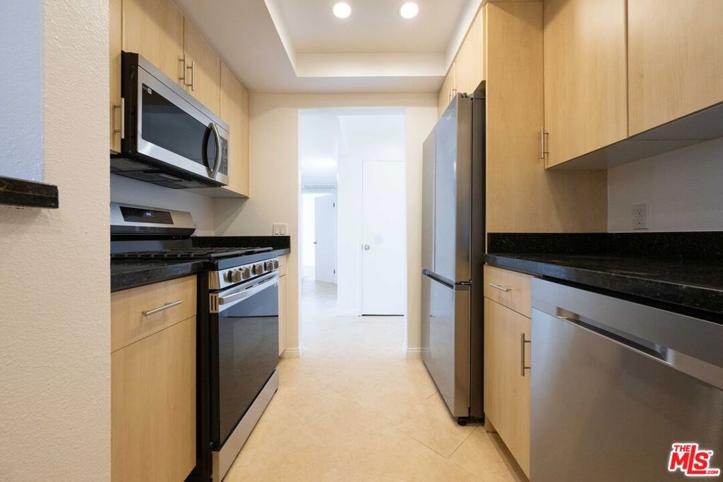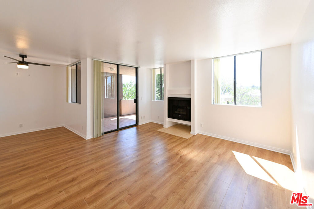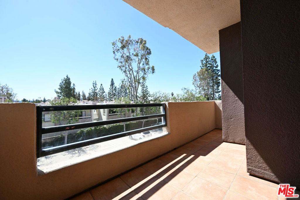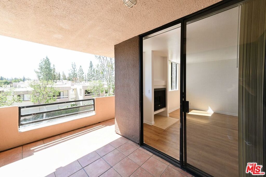 Light and bright second floor unit in the highly sought after Elkwood Terrace community. This secluded beauty feels like a small home with its open floorplan and private balcony. Recently updated kitchen with sleek black counters, wood cabinets, stainless steel sink, and brand new dishwasher, range and microwave. New flooring throughout the living area and bedrooms give an even more spacious feeling to this sharp floor plan. Living room has a cozy fireplace and looks out to the beautiful Santa Monica mountains. Perfect to relax after a long day in your own secluded space. Private primary suite with its own bath, big closet and a large shower. The hallway bathroom has a very generous sized shower with granite counter. The second bedroom also has ample closet space. The community has a lovely pool deck with a pool, spa, lounge area and fitness center surrounded by trees and lush greenery.