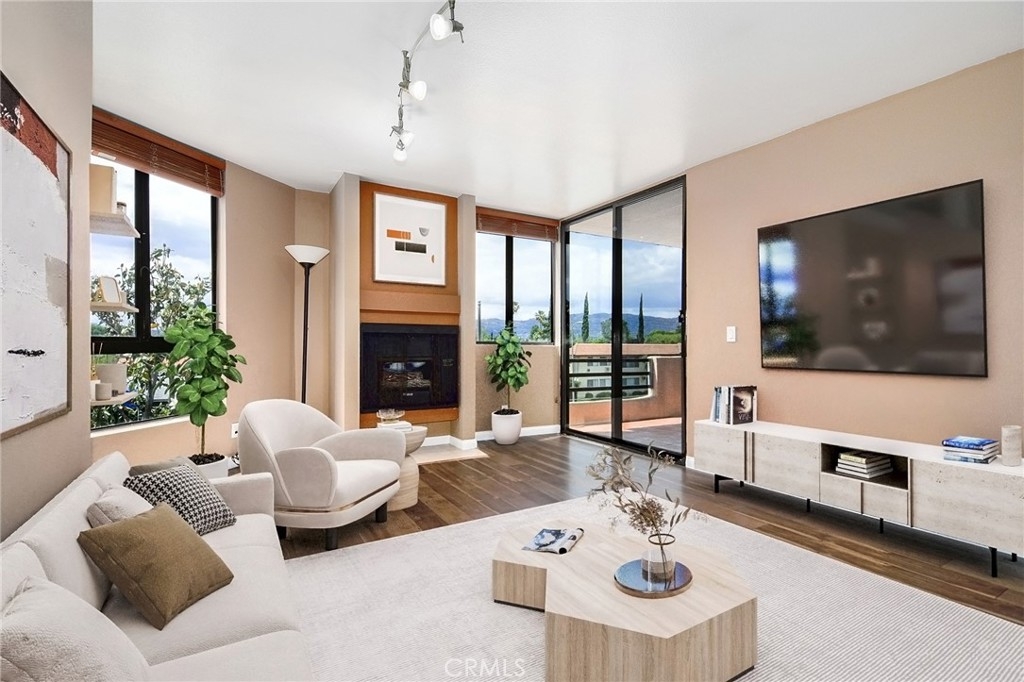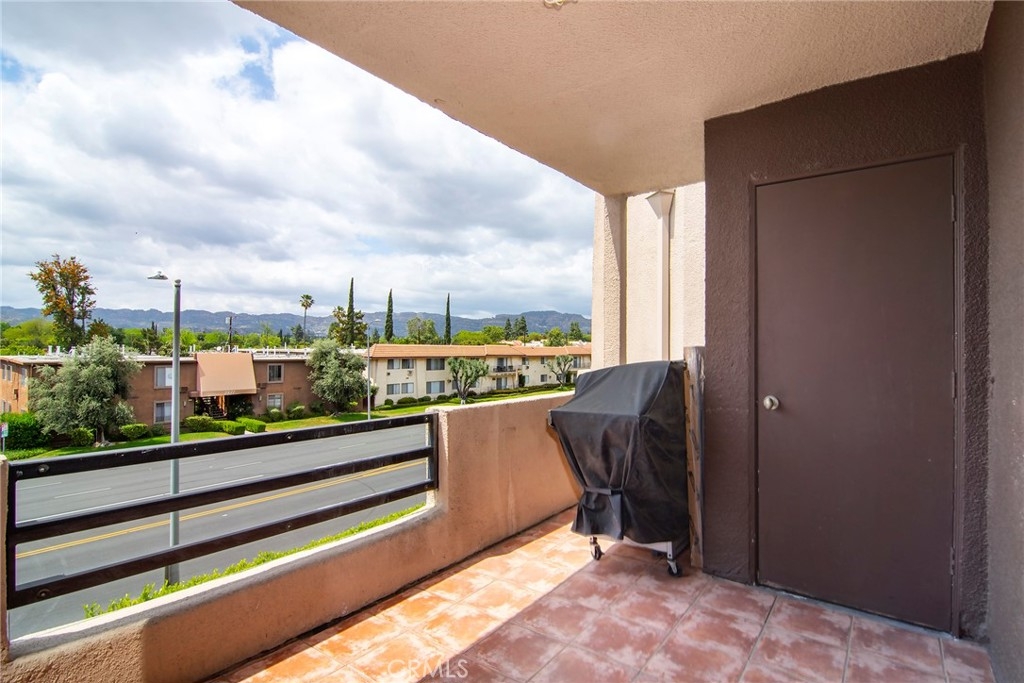 Welcome to this stunning one-bedroom, one-bathroom top-floor condo in the highly sought-after Elkwood Terrace community, offering breathtaking views of the Santa Susana Mountains. This bright and airy unit features an open floor plan, sleek stainless steel appliances, in-unit combo washer/dryer, and central air for year-round comfort. Enjoy resort-style living with community amenities that include a sparkling pool and spa, fitness center, elevator access, and ample guest parking. The unit comes with a reserved tandem parking space for two vehicles (Space #7). HOA covers water, trash, grounds maintenance, controlled access, and even earthquake insurance! Ideally located just minutes from Topanga Mall, The Village, fine dining, shopping, and entertainment—this is Valley living at its best!!