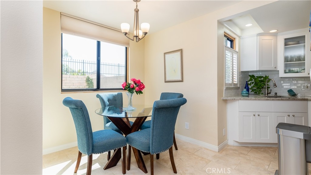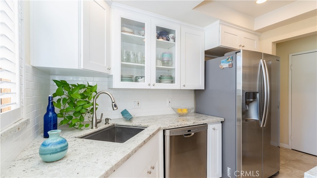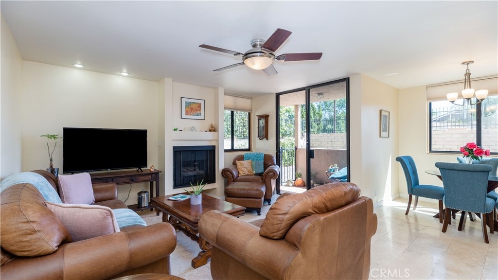 Very Private End Unit in Elkwood Terrace community. This bottom floor secluded beauty feels like a small home with its open and bright floorplan and very private patio, looking out to the rarely used common area. Lovely light and bright recently tastefully updated kitchen with granite counters, white shaker cabinets, stainless steel sink, dishwasher, stove and microwave. Formal dining area with walls of windows bring the natural light in, to enjoy a quality dining experience. Classy travertine floors throughout the living area give an even more spacious feeling to this sharp floorplan. Living room with a cozy gas Fireplace looks out to the private patio. Perfect to take brake, relax or enjoy a good book in your own secluded space. Private Master Suite with its own Bath has beautiful bamboo flooring, big closet and a large Tub with a shower. The second Bathroom in the hallway has a very generous size shower, updated vanity with granite counters and a large sink. The second bedroom is also accented by Bamboo flooring and great closet space. The community has a lovely Pool area with a pool, spa, patio with a lounge area and a great Gym. Come and enjoy the lifestyle this community has to offer.