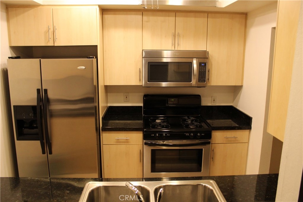 Stately, modern Condo Complex built in 1986. All units Remodeled in 2007. Turnkey, very impressive, quiet bldg w/Security Cameras & Gated Parking, 2 Tandem Spaces #69 located near front gate. Mail on interior near Elevator. Doors locked 24/7. Laundry conveniently close to unit. Open Floor Plan w/Tree Shaded large Living Room & Balcony, Gas Log Fireplace & Wood Laminate Floor. Beautiful Kitchen & Bath w/Floor Tiles, Granite Counters, Blonde Modern Wood Kitchen Cabinets, new fixtures & matching Stainless Steel Refrigerator, built-in Microwave, Stove, Dishwasher & Sink. Bedroom has newer Carpet, Walk-in Closet w/Organizer Shelf. Unit new-looking & well-maintained. Mirror Doors coat closet. Bedrm window is $1,500 new with tint & sound barrier features. Central AC & Heat. Garden/Resort Style Complex w/quiet Lounge Area, Pool, Hot Tub & Fitness Center. Brand new 40 gallon Water Heater to Code & easy access turn off valves. Close to Dining, Shopping, Westfield Topanga Mall, The Village, Warner Center & Costco. A must see!