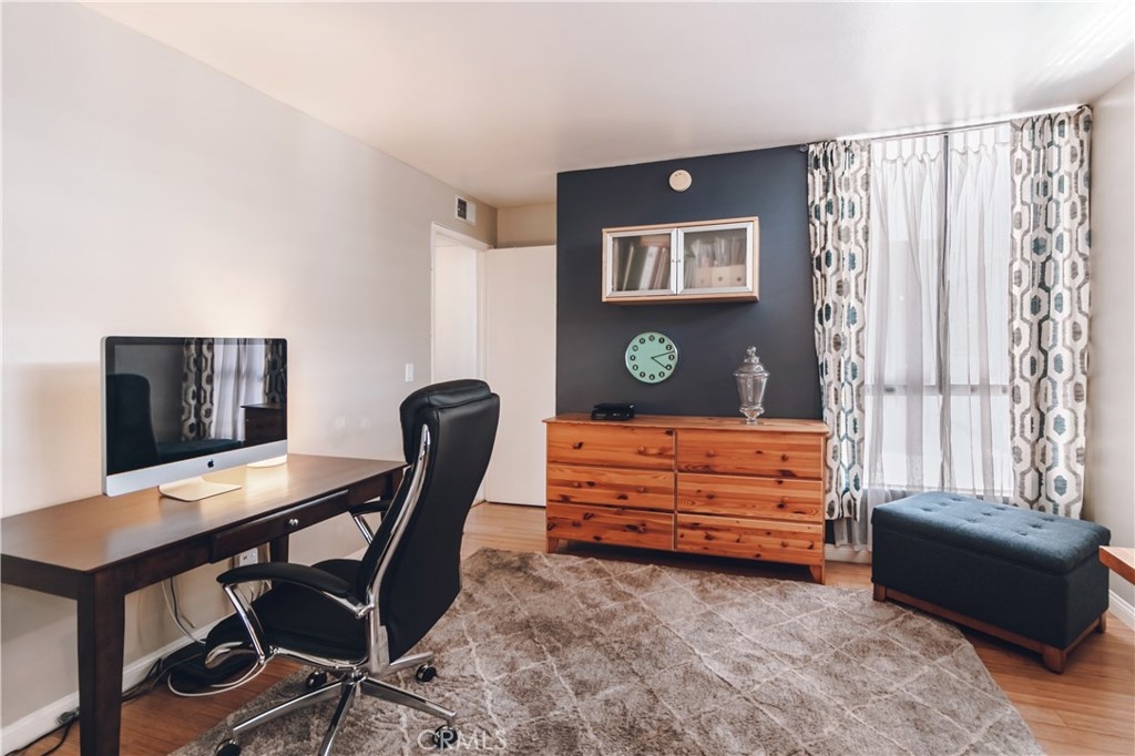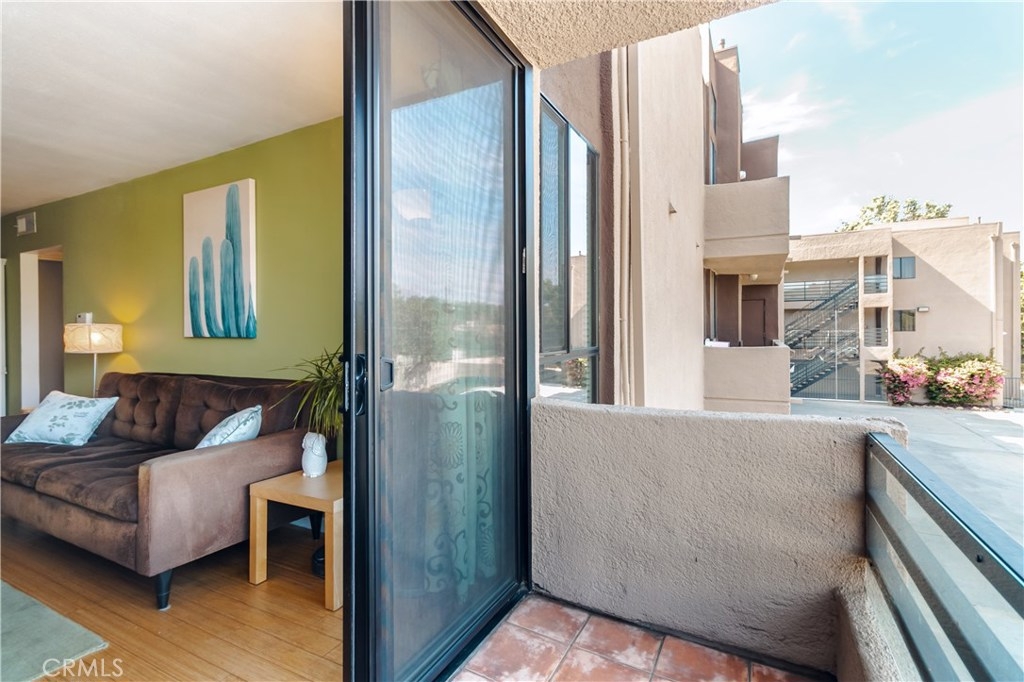 Charming, Cozy and Move-in ready! Come see this Stylish 2+1 condominium, located on the second level with the entrance overlooking the amazing Pool and Gardens. Upon entering, you will notice the Bamboo Hardwood floors throughout the home with new Tile flooring in the kitchen. This upgraded kitchen includes a Stainless Steel Refrigerator, built-in Microwave, Stove, Dishwasher, Sink, amazing cabinetry and Stone Countertops. There is a breakfast bar open from the kitchen and the dining area. The living room includes a fireplace and built-in shelving. This rear unit is tranquil with a charming patio and a cool breeze. There are two large bedrooms with ample closet space. The full bathroom has a separate Vanity and sink area for privacy. This incredible condo also includes a large private storage unit. Enjoy the Garden/Resort style complex with quiet Lounge Area, Pool, Hot Tub & Fitness Center. It is Close to Dining, Shopping, Westfield Topanga Mall, The Village, Warner Center & Costco.