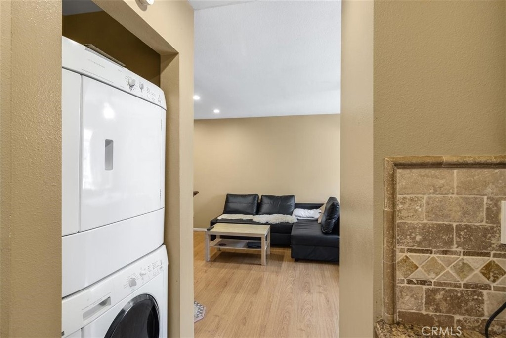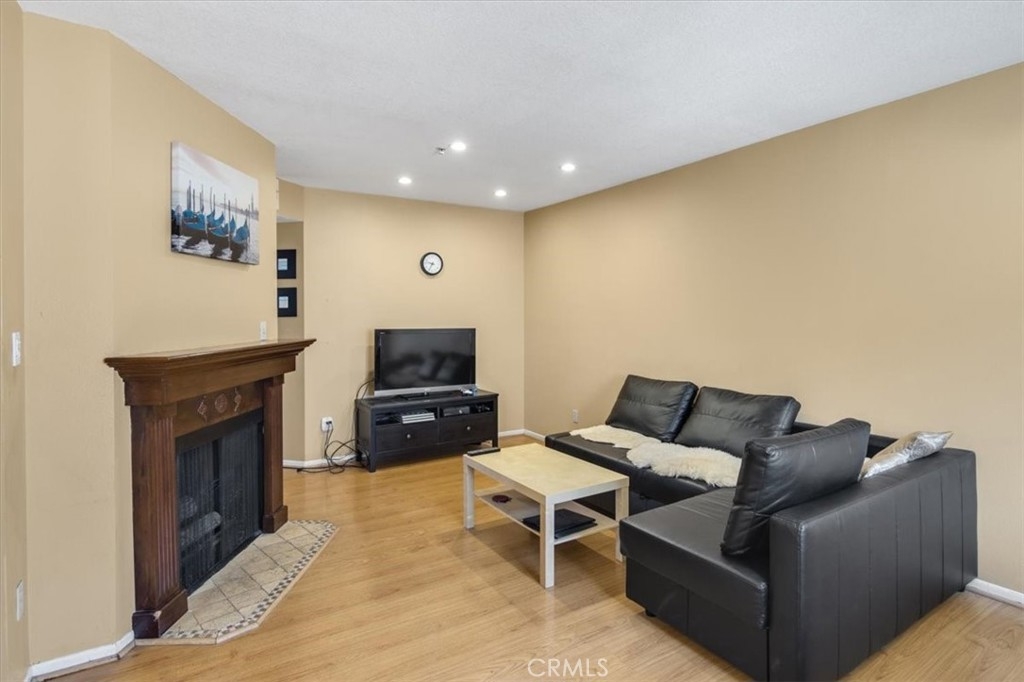Top floor bright two-bedroom condo with two full bathrooms. Parking for two cars. In-unit laundry. Beautiful fireplace in the living room. Kitchen with granite countertop, backsplash tiles, and lots of cabinets. Master bedroom has an in-suite bathroom, walk-in closet and balcony. Other features include – laminate wood flooring, recessed lighting, central air, with nest thermostat, cooling fans in bedrooms. The complex has only 16 units. Security cameras installed, small recreational and gym areas. Conveniently located. Just a short distance to many local shopping, dining, entertaining, Topanga Mall, Warner Center, Pierce College and many more. Hurry! Don’t miss your opportunity to own a two-bedroom condo!