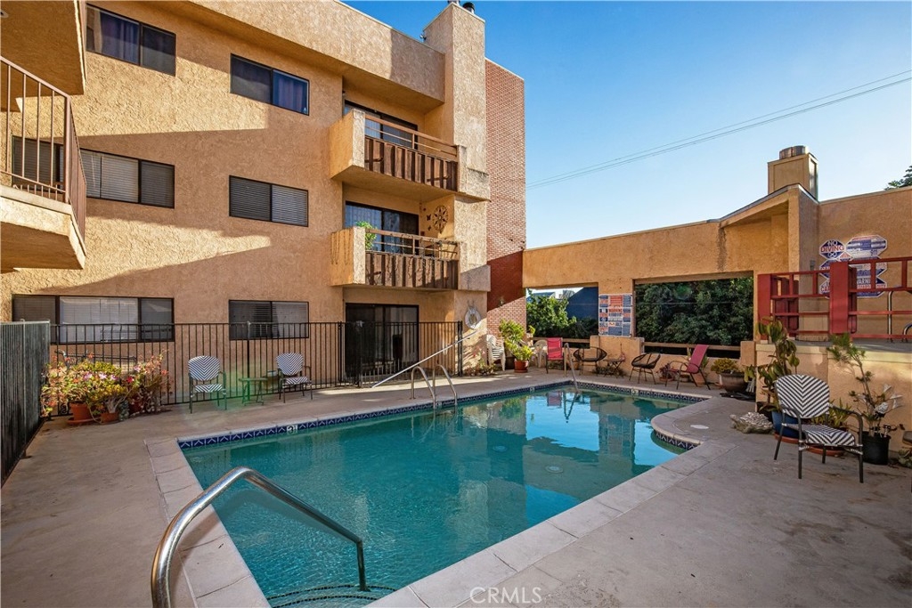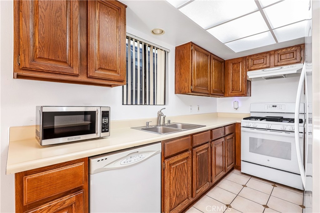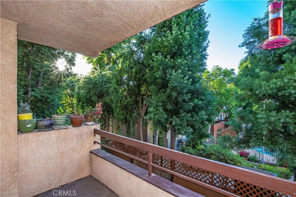 Home at last. This lovely condo could be yours. Excellent opportunity for a 2 bedroom 2 bathroom with an open floor plan. Featuring a private balcony with a very nice view of the pool along with an open-concept living room and dining room. Custom tile though out main living space. Stand out with your custom-plastered ceiling and walls. Beautiful crown molding and tile work. The gas fireplace is a perfect fit for those cold nights. The galley-style kitchen has a brushed nickel faucet with ample storage. Gas stove & dishwasher to stay. A newer washer and dryer are conveniently located in the hallway that are staying. This home has 3 walk-in closets. The two bedrooms and also in the hallway as you walk in for storage or any great ideas you may have. The bedrooms are a good size. Also includes the primary bedroom with an en-suite bathroom that includes a double sink vanity, walk-in shower, and separate tub. The secondary bedroom is a nice size with a 3/4 bathroom available for guests. Amenities include a sparkling pool, spa, and large outdoor community space. A big plus with convenient parking with 2 private parking spaces. This condo has a lot to offer. Convenient location for dining, shopping, parks, recreation, and easy access to the118 and101 freeways.