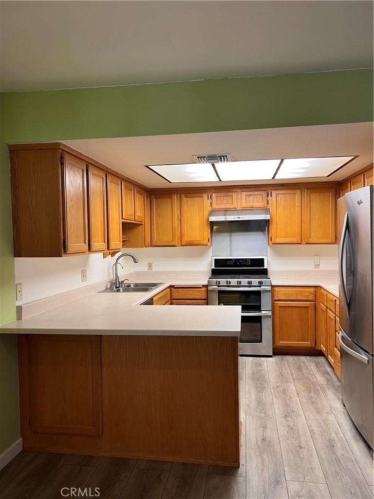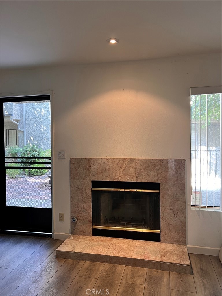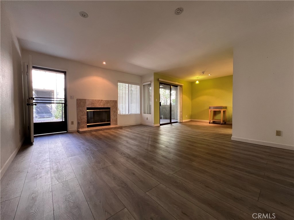 Wonderful lower level spacious 2 bed, 2 bath condominium in a quiet pride of ownership building! This well maintained unit has newer engineered floors throughout, open kitchen with newer stainless steel appliances. The spacious living Room, dining room area also has a marble tiled fireplace! Primary En-suite bedroom features double closets! Spacious second bedroom, laundry closet and linnen babinets complete the interior. The lush Courtyard provides a quiet and serene environment. There is also an inviting pool and spa! This complex is securly gated and with direct access from parking garage. Building is Non-smoking and there is basic cable included! Building has been earthquake retrofitted as well.