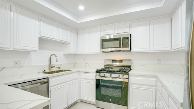 This stunning 2-bedroom, 2-bathroom condo has been fully remodeled and offers a perfect blend of modern finishes and comfortable living. Step inside to discover updated vinyl flooring throughout, recessed lighting, and a bright, open floor plan. The kitchen features quartz countertops, updated cabinetry, and stainless steel appliances, creating an ideal space for cooking and entertaining. Both bedrooms are spacious with ample closet space, and the bathrooms have been tastefully updated with contemporary fixtures. Located in a gated community with 24-hour security, residents enjoy peace of mind along with fantastic amenities including a pool and spa. The HOA covers water, trash, and sewer, making living here both convenient and affordable. This move-in-ready condo offers the best of comfort, style, and value in Canoga Park.