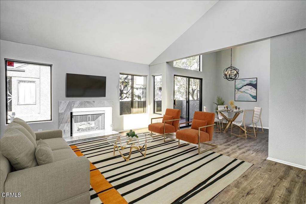 Very well cared for 2 bedroom, 2 bath, second floor unit in Canoga Park! You'll love the natural light from numerous windows that adorn this home. Living room with vaulted ceilings, fireplace, and easy flow throughout the living space. Long time owner recently remodeled kitchen with quartz countertops, refinished cabinets, new appliances, stainless steel farmhouse sink, and recessed lighting. Bedrooms with ceiling fans and more natural light from the South facing windows. Remodeled bathrooms, all new paint & flooring throughout. There is also a balcony for a BBQ! Complex includes pool, spa, gated entry and two off street covered parking spaces.