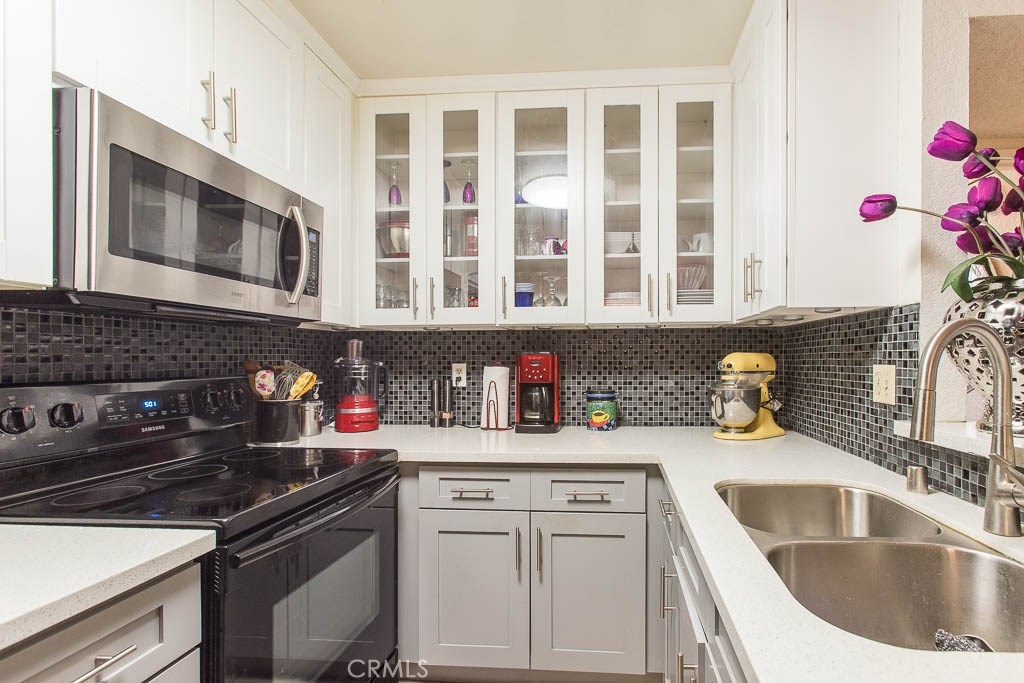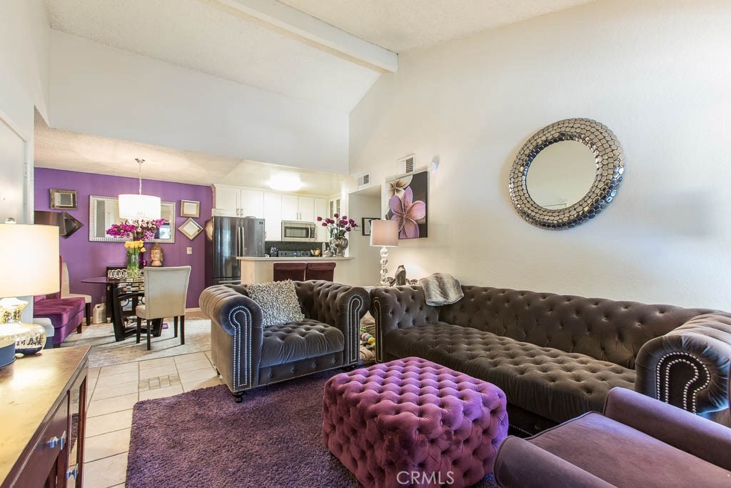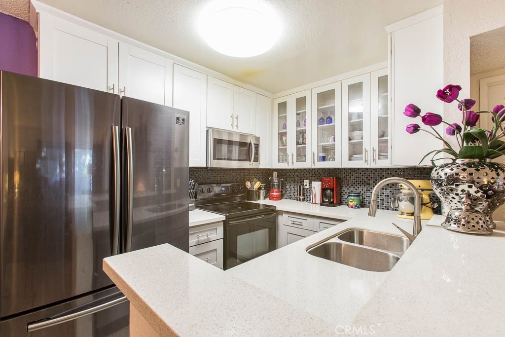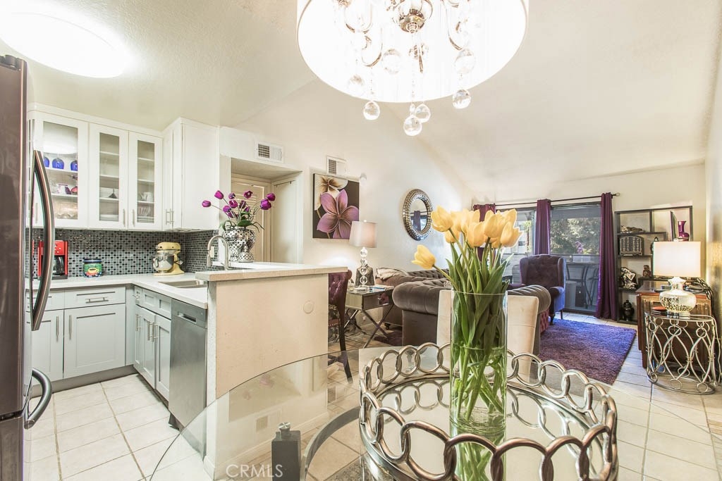 **Buyer couldn't perform.****Back on the Market with a PRICE REDUCTION.**** TOP floor, one bedroom, one bath, condo in a gated, Canoga Park complex. The unit gives you an open floor plan with comfy living space offering HIGH VAULTED CEILINGS and a PRIVAE PATIO DECK. Tile floors throughout the unit. The UPGRADED KITCHEN boasts stainless steel appliances, tile back splash, quartz counter tops, cabinets with see through glass, soft close drawers and breakfast bar. The nearby dining off of the kitchen/living area offers plenty of seating space. Bedroom has great natural light, a ceiling fan and ample closet storage. The full bathroom has great natural light. Additional, large closet in hallway with mirrored doors. The unit COMES WITH TWO ASSIGNED PARKING SPACES in a secure, gated area. ONE SPACE IS CONVENIENTLY LOCATED IN FRONT OF THE UNIT. Amenities include a pool and spa, an on-site laundry room and a communal BBQ area. Conveniently located near great dining, shopping, recreation, and transportation.