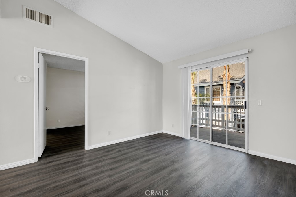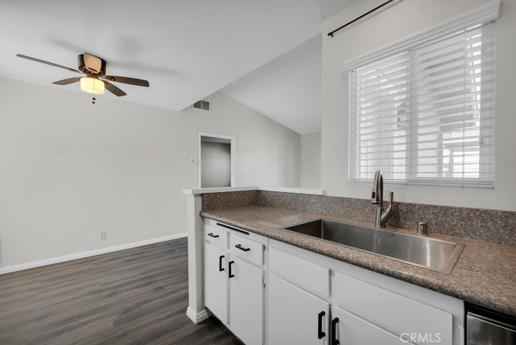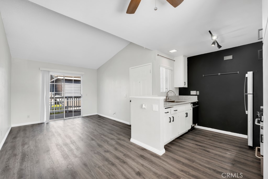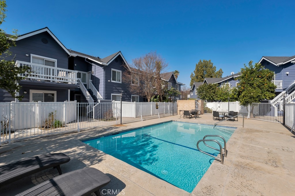 Stylish top-floor 1-bed, 1-bath condo in the gated Nantucket Community. This bright, open-concept living space features a dual-pane glass slider leading to your private balcony—perfect for outdoor entertaining. The remodeled kitchen comes with fully functional stainless-steel appliances. The unit boasts a dining area, vaulted ceilings, a ceiling fan, and laminate hardwood flooring throughout. The bedroom includes a walk-in closet with built-in organizers and an ensuite bathroom with a newly reglazed tub. For added convenience, an indoor stacked washer and dryer are located next to the linen area. Enjoy two assigned carport parking spaces just steps away, plus a gated entry, ample guest parking, and a community pool. Exterior renovations (paint, siding and fencing) and windows replaced in 2023. Conveniently located near public transportation, colleges, shopping, restaurants, and just minutes from freeways and state routes.