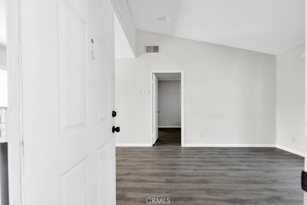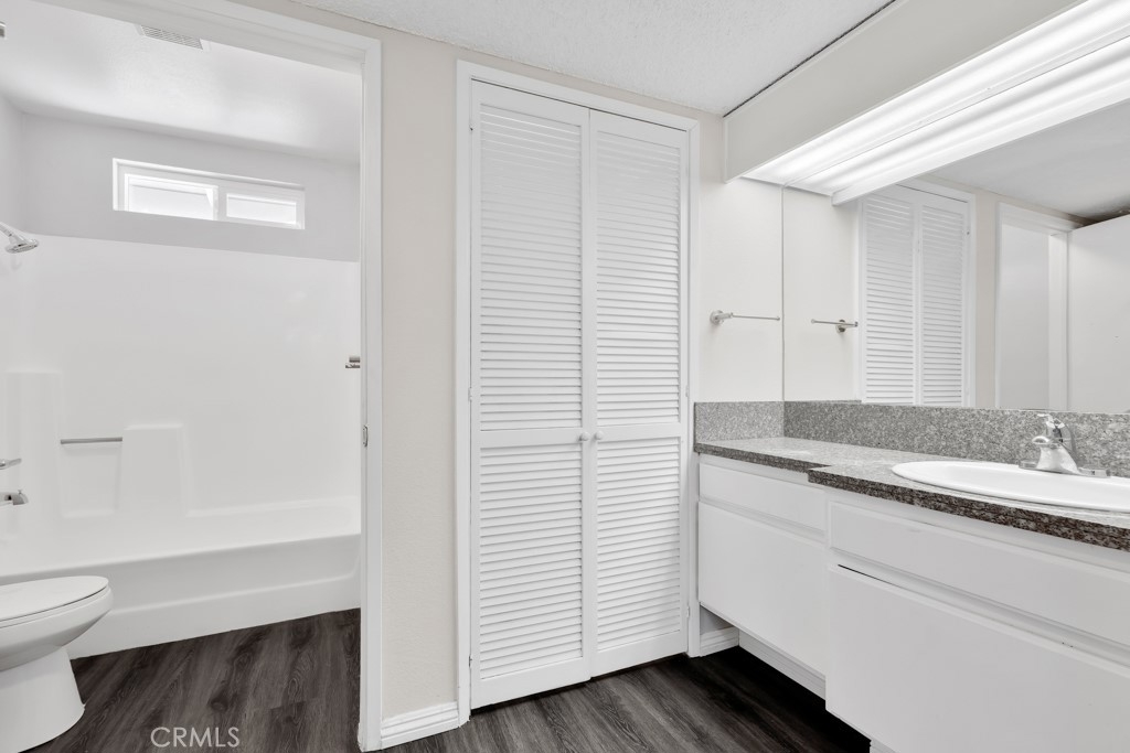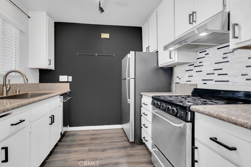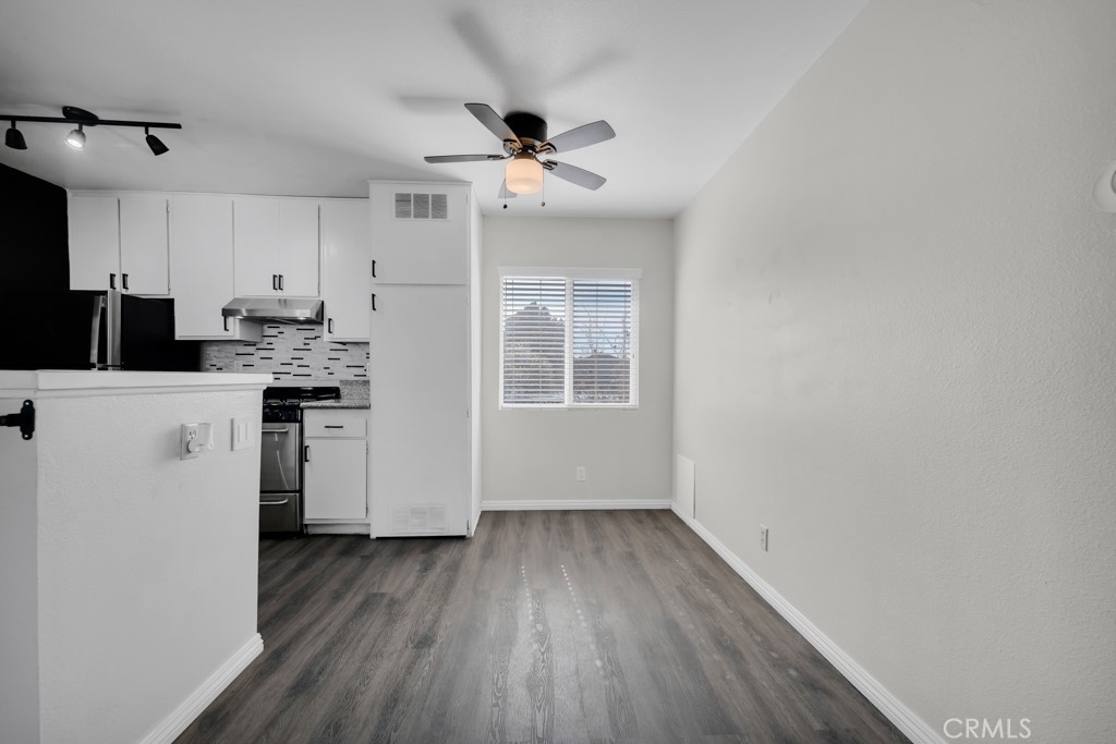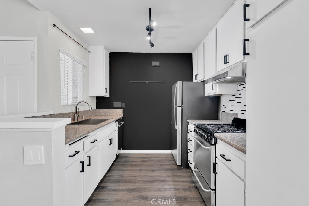 Stylish top-floor 1-bed, 1-bath condo in the gated Nantucket Community. This bright, open-concept living space features a dual-pane glass slider leading to your private balcony—perfect for outdoor entertaining. The remodeled kitchen comes with fully functional stainless-steel appliances. The unit boasts a dining area, vaulted ceilings, a ceiling fan, and laminate hardwood flooring throughout. The bedroom includes a walk-in closet with built-in organizers and an ensuite bathroom with a newly reglazed tub. For added convenience, an indoor stacked washer and dryer are located next to the linen area. Enjoy two assigned carport parking spaces just steps away, plus a gated entry, ample guest parking, and a community pool. Exterior renovations (paint, siding and fencing) and windows replaced in 2023. Conveniently located near public transportation, colleges, shopping, restaurants, and just minutes from freeways and state routes.