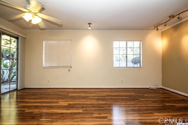 Very beautiful 2 bed 2 bath condo in Canoga Park! Richly colored hardwood floors throughout, granite counters in the kitchen and adjacent laundry room. Bright bedrooms with large mirrored closets and the master suite has his and hers closets. Cute patio area is perfect for your morning coffee and tea. Enjoy the sparkling association pool during the summers!