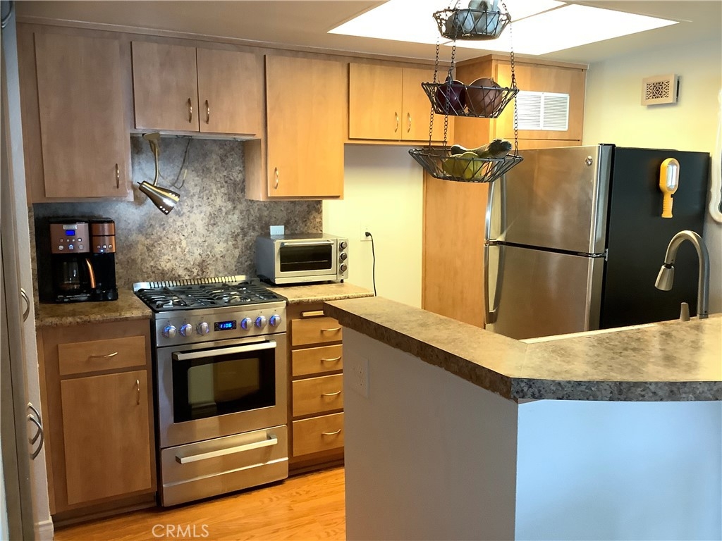 Price adjustment! Cozy condo located in the heart of Canoga Park in a gated community. This tranquil condo is an end unit with only one attached wall. Nicely updated with natural kitchen cabinets and warm counter tops. Laminate flooring and a spacious living room. Nicely sized backyard. HOA covers water, exterior maintenance of the home, trash and a community pool as well as the gated entrance.