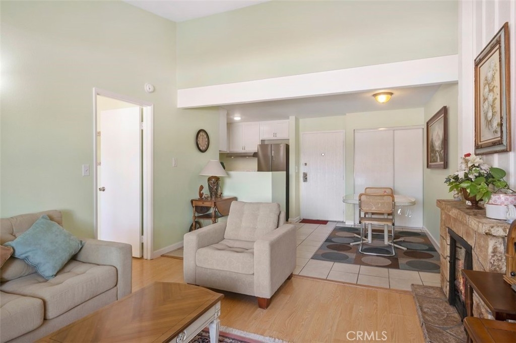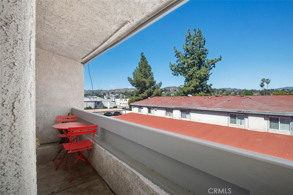Located in Canoga Park is this gorgeous light and bright top floor unit with an open floor plan. The kitchen features granite countertops and tile flooring. Living room has beautiful vaulted ceilings, a fireplace, and laminate wood flooring. Sliding glass doors off of the living room lead to the large private balcony with partial mountain views. The bedroom offers laminate wood flooring, an en-suite bathroom, and large closet space. Complex amenities include a sparkling pool and spa, gated entry with two parking spaces, elevator and three community laundry areas. Close proximity to the Westfield Topanga shopping center, The Village, and many other shops and restaurants!