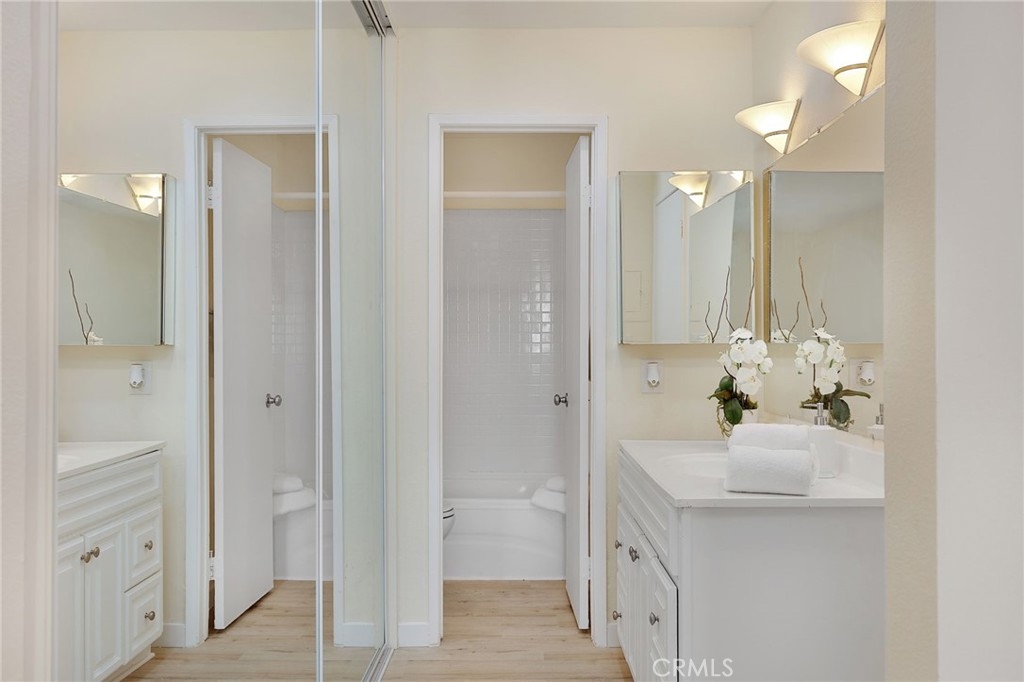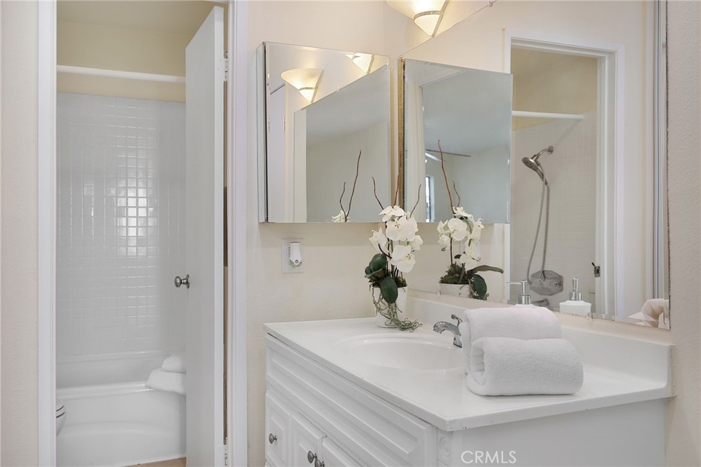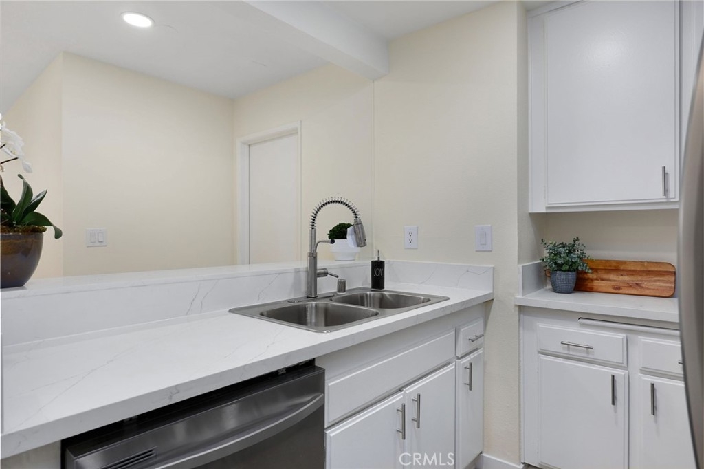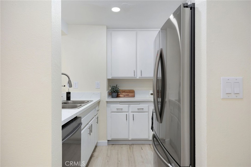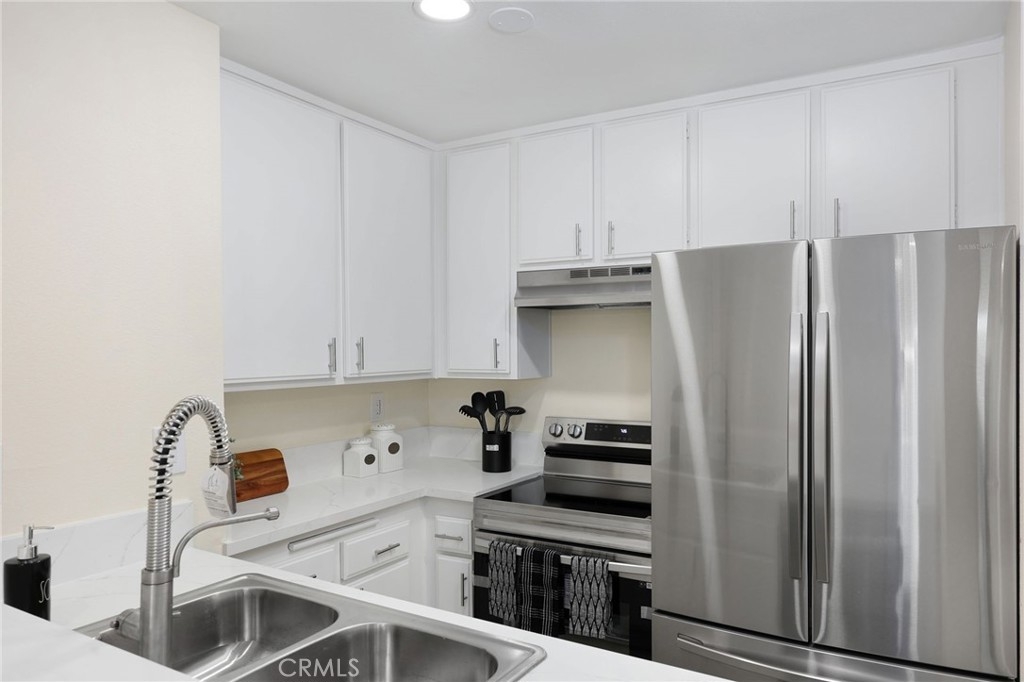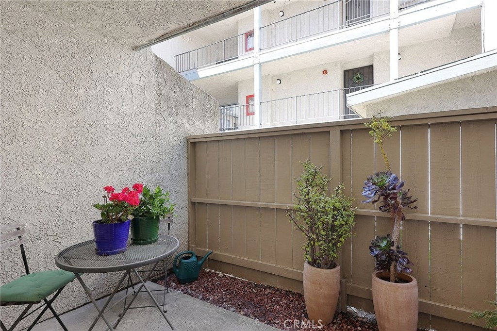 Stunning condo in the heart of Canoga Park! This beautiful end-unit in a highly desired interior location has been newly and tastefully updated throughout. The well appointed kitchen features breakfast bar, new quartz counter tops and all new stainless steel appliances; including refrigerator, oven, range, double sink and faucet, and cabinets with modern handles. The freshly painted interior boasts smooth ceilings, new luxury vinyl plank flooring, recessed lighting, and new A/C-heating unit. It's spacious, light filled living room and dining area open through sliding glass doors to the private fenced patio, ideal for relaxing. The ensuite bathroom has new mirrored wardrobe closet doors, new toilet, ceiling fan/light, and upgraded tub/shower with new shower head. This gorgeous unit comes with 2 covered, tandem parking spaces. The gated complex amenities include pool, spa, ample guest parking, community laundry areas, elevators, has low HOA fees, and is conveniently located near great shopping, restaurants, nearby park and public transportation. Don't miss this opportunity to make this your home!