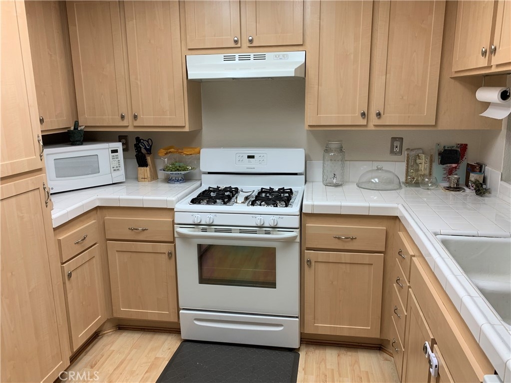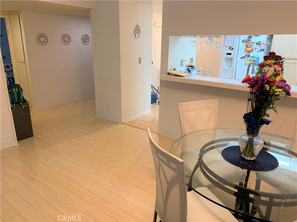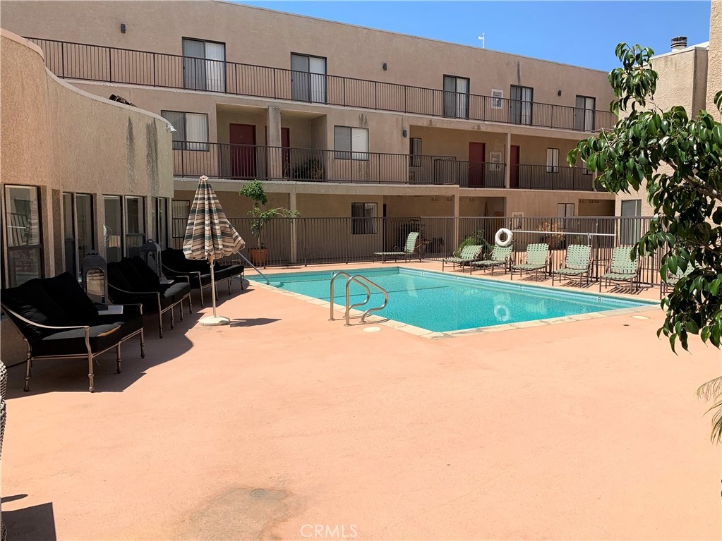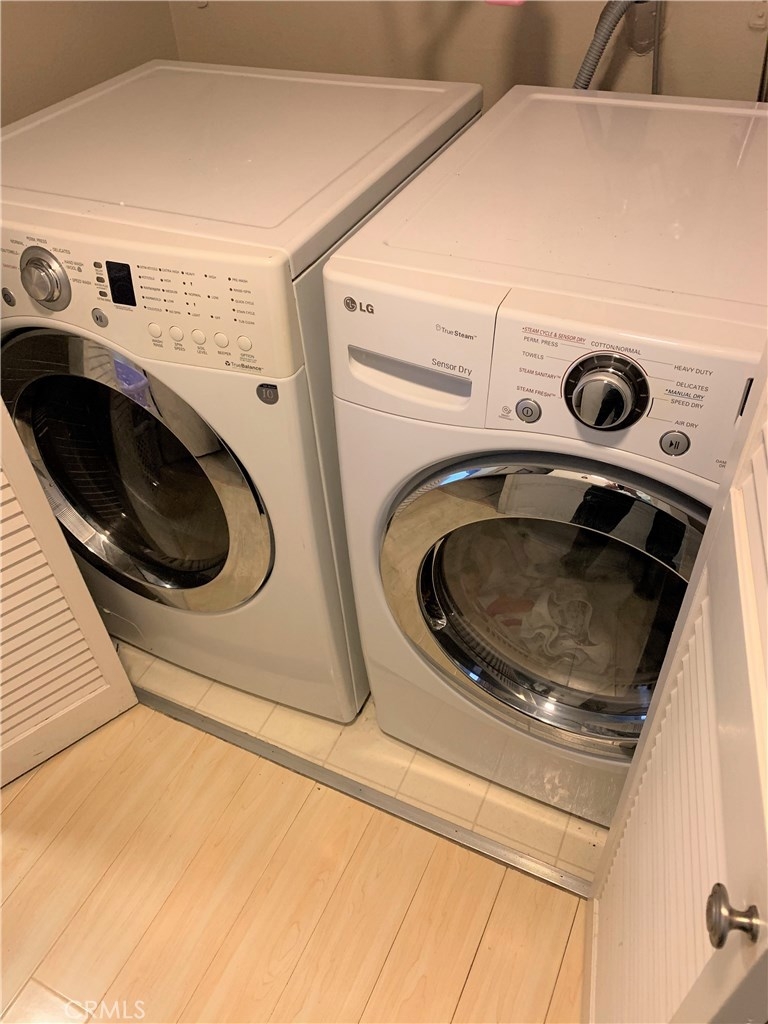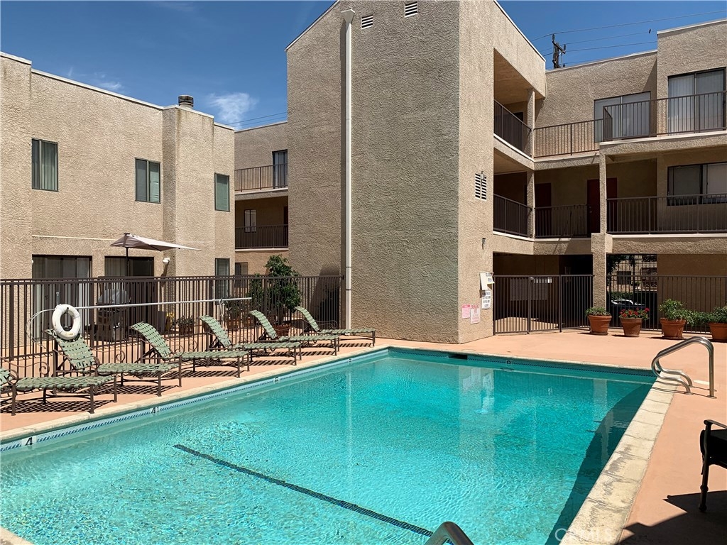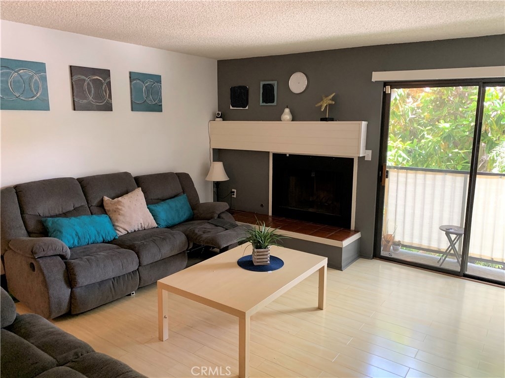 Updated and move in ready! 2 bedroom and 2 bath end unit in a pride of ownership complex. Wood floors throughout, spacious living room with gas fireplace and balcony. Large kitchen with eat in area, free standing gas oven and range, dishwasher and refrigerator. Full size, side by side laundry closet with washer and dryer included, central A/C, plenty of storage and more! Spacious bedrooms and true master bedroom with master bathroom plus mirrored closets. Assigned 2 car secured subterranean parking (tandem), community pool plus room for entertaining! A wonderful opportunity to own a large condominium at an incredible price with low HOA’s and centrally located to all.