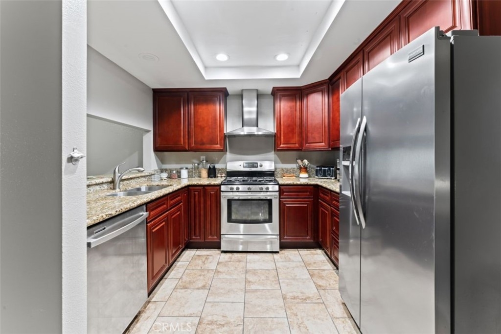 This is a Magnificent Remodeled, Turn Key, Single story "bottom floor" 2+2 with over 1100 sq feet of living space. Remodeled upgrades include A/C, Heater, Fireplace cleaned & upgraded, Ecobee thermostat, Nest smoke alarms, Mirrored closets with recently replaced laminate in bedrooms, White vinyl dual-pane windows with custom blinds, matching Tile flooring in living areas and bathrooms and partial electric upgrades. The entry way has room as a foyer with a unique chalk board wall paint for you to remind or enlighten yourself upon departing this charming & warm home. Kitchen is upgraded with warm granite counters tops, tile flooring, stainless steel appliance with lovely cabinetry and a breakfast bar overlooking the large formal dining or living room with recently upgraded fireplace with 5 year warranty. There is an additional space in the kitchen for storage or dining area with a window that’s wonderful for your morning coffee. The Primary bedroom has an attached private & upgraded bathroom with shower & granite counters. The 2nd bathroom has granite too with dual sinks and matching Full size Affinity Washing & Dryer in an additional closet space with shelves. Complex is a winner with a sparkling pool, elevator, gated entry, dedicated & guest parking with storage & only 40 units in this cozy and well maintained complex centrally located near many amenities for any lifestyles. The complex also has an elevator & gives you two personal shaded subterranean tandem parking spaces, an oversized gleaming pool for these hot summer days, A recreation room with 2 bathrooms and shower facilities for parties and events. It has well maintained grounds with guest parking, secured by cameras & controlled access. Quick access to the Canoga Bike Path, Orange Line, and is only a few minutes away from Westfield Mall, not to mention several freeways! Come check this well-loved condo available now just in time for Summer!