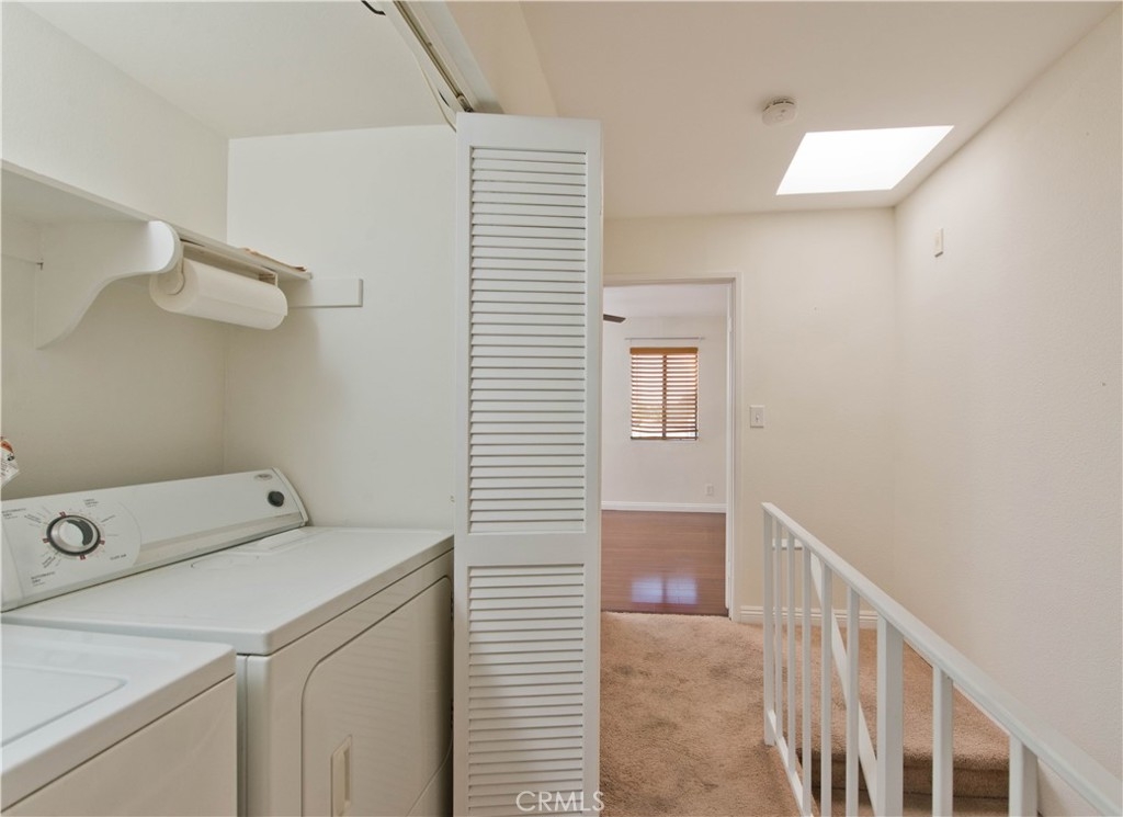Welcome Home! This inviting two-story townhome-style condo boasts a spacious and airy design with a lovely view of the pool. The first level features an open concept layout, including a large kitchen equipped with stainless steel appliances and a dining area. The living room is generous in size, complete with a fireplace, wet bar, and balcony for outdoor enjoyment. Additionally, there's a convenient half bathroom on this floor. Upstairs, you'll find two well-appointed suites, each offering ample closet space and charming bathrooms. The upstairs laundry area with side-by-side units is a rare luxury in condo living. For your convenience, the property includes subterranean parking with two designated spots, a storage closet, and guest parking spaces. The community amenities are fantastic, including a large swimming pool, a recreation room, and outdoor patios. Enjoy easy access to nearby restaurants, shopping, and public transit.
