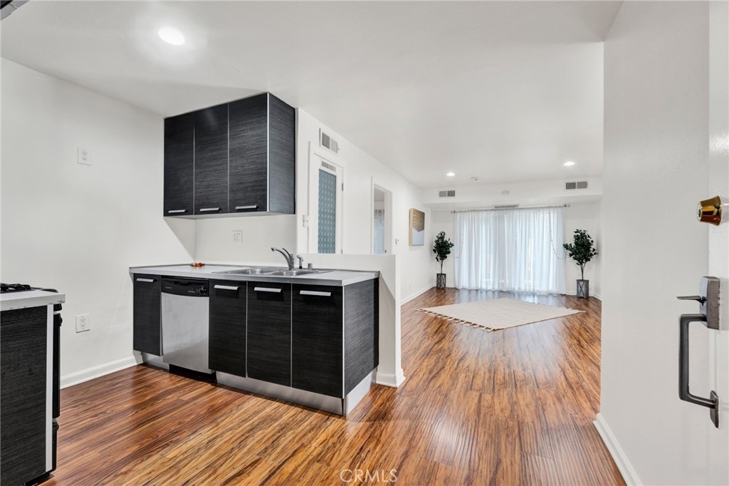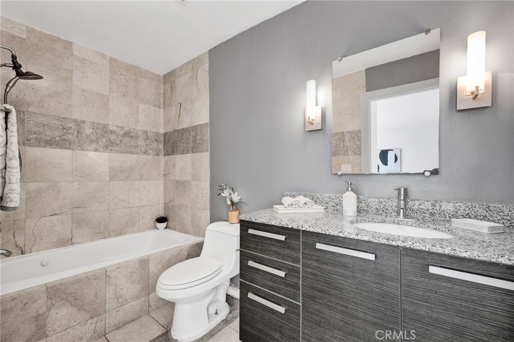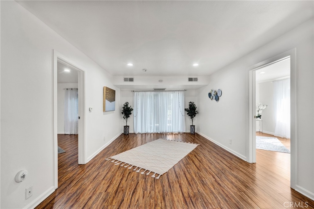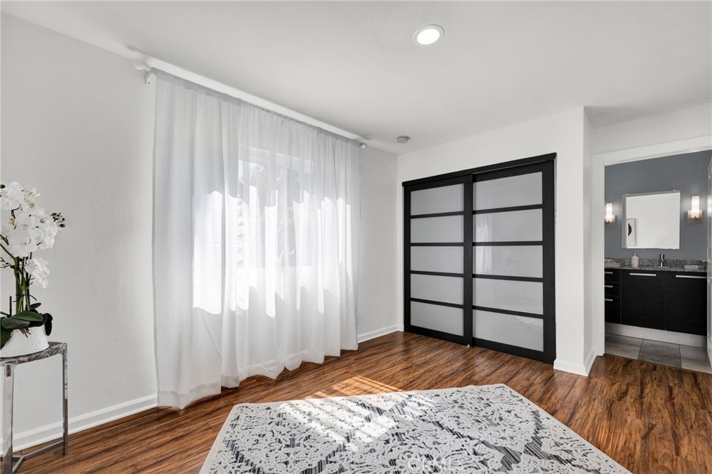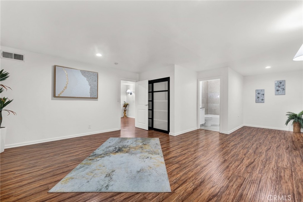 Fabulous two bedroom and two bathroom Condo in a beautiful residential neighborhood. The home offers bright and open floor plan with private dual primary suites, each with its own ensuite designer bathroom. Enjoy upscale wood-like laminate flooring throughout, recessed lighting, newer central air/heat unit and assigned/gated 2-car parking. Small gated complex is located minutes from Ralphs, Target, Costco, The Village, Westfield Mall, The Warner Center, local restaurants and shops, entertainment, and so much more!