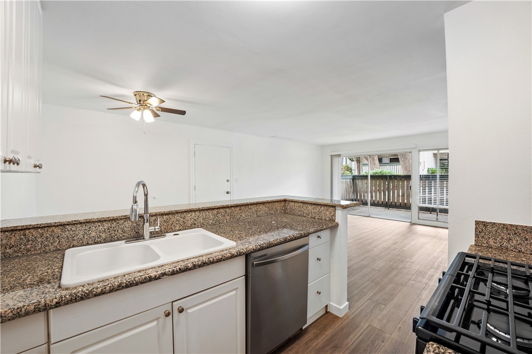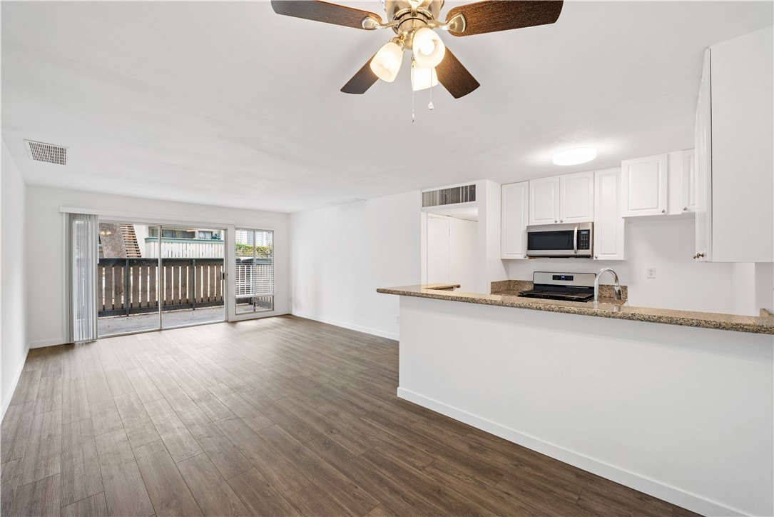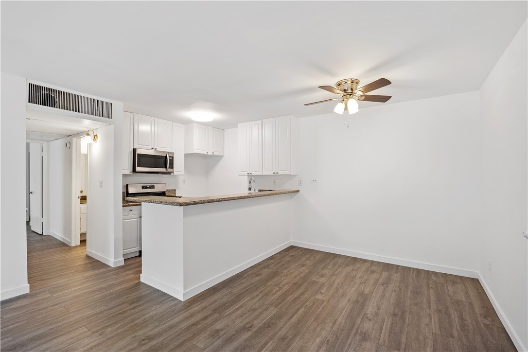 Renovated Village Park two bedrooms + two full baths. Interior location. New wood style vinyl flooring. New paint. Granite countertops. New stainless steel appliances. Bathrooms have been updated. Vertical blinds. Master suite. Central refrigerated air. Patio. Community pool and spa.