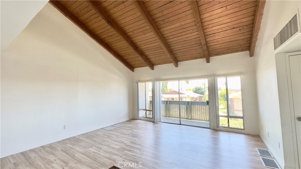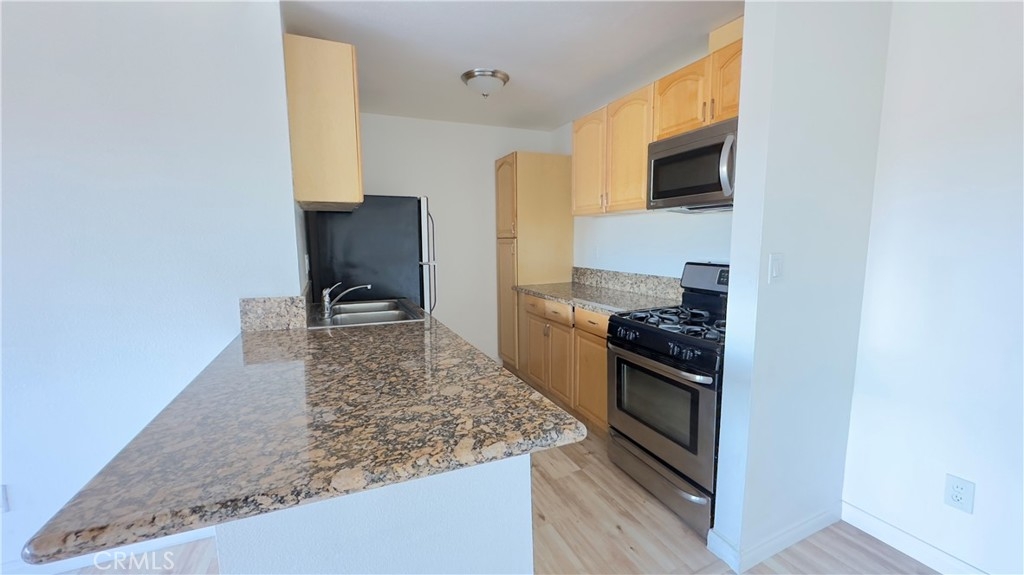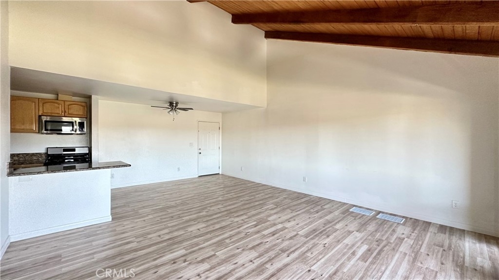 Welcome to the beautiful gated Village Park condo complex. Located in a prime neighborhood of Canoga Park this community features park like grounds with lush landscaping. While here enjoy the sparkling pool & spa, recreation room, and bbq's at the outdoor cooking area. Laundry facilities are on site conveniently located near this unit. This great upstairs unit benefits from lots of natural light brought in by the big windows in the living room and bedrooms. Enjoy relaxing or entertaining in the large living room with open beam vaulted wood ceiling and private balcony. The remodeled kitchen features granite counters, ample cabinet space, stainless appliances and a built-in microwave. The primary bedroom has its own private bathroom. All bedrooms are good size. Ceiling fans are in bedrooms and the dining area. Additional highlights include newer floors, mirrored wardrobe doors and raised six panel interior doors. When coming home you'll have the convenience of your own parking space (#29). Additional parking spaces are $41 per month based on availability. Here is the opportunity you've been waiting for to own your own place. Come see for yourself what a great place this is.