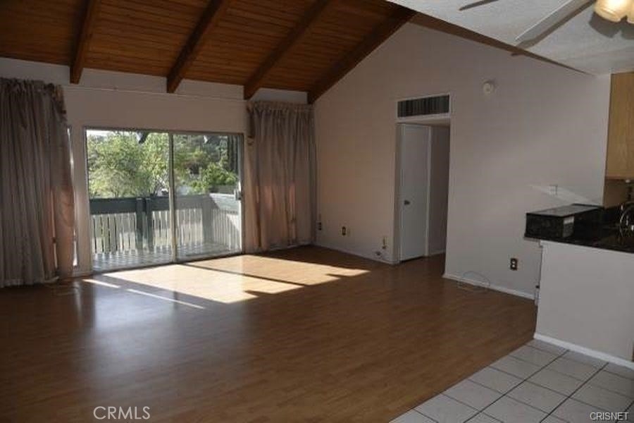 Updated top level unit. All walls have been re-textured and painted, ceilings smoothed and balcony redone. This spacious 3 bedroom unit has great views and plenty of space on it's balcony for a weekend barbecue. The master bedroom has it's own private bathroom and his and hers closets. The family room boosts wood beam high vaulted ceilings with direct access to the private balcony. Main living space has beautiful laminate flooring throughout with carpeting in 2 of the three bedrooms. The kitchen has granite counter-tops with beautiful cabinets. This community has a resort style living experience with wonderful amenities. Close to public parks, stores and transportation. No pets are allowed at this complex.