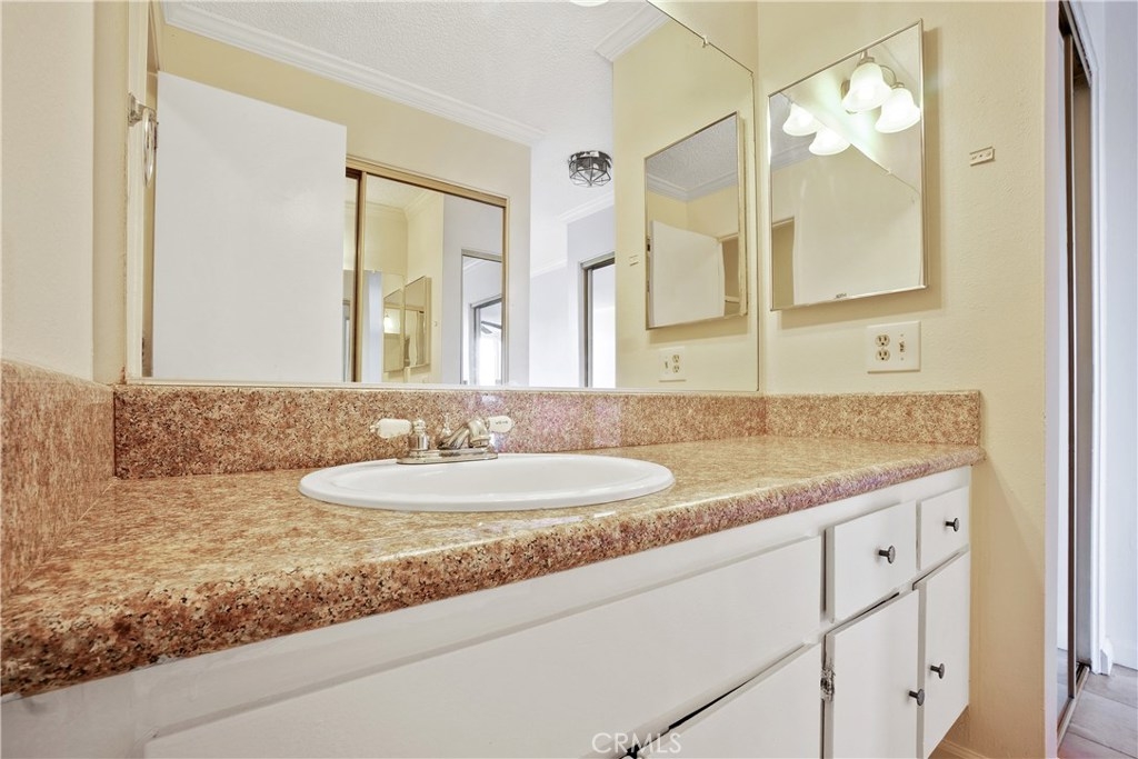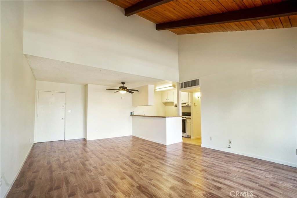 Light and bright top floor 2 bedroom, 2 bathroom unit. Features high pitched ceiling in the living room, laminate flooring, new a/c unit, upgraded counter tops in kitchen and bathrooms, mirrored closets in bedrooms, masterbed room has 2 closets, spacious oversized balcony. Close to front gate, park is across the street.