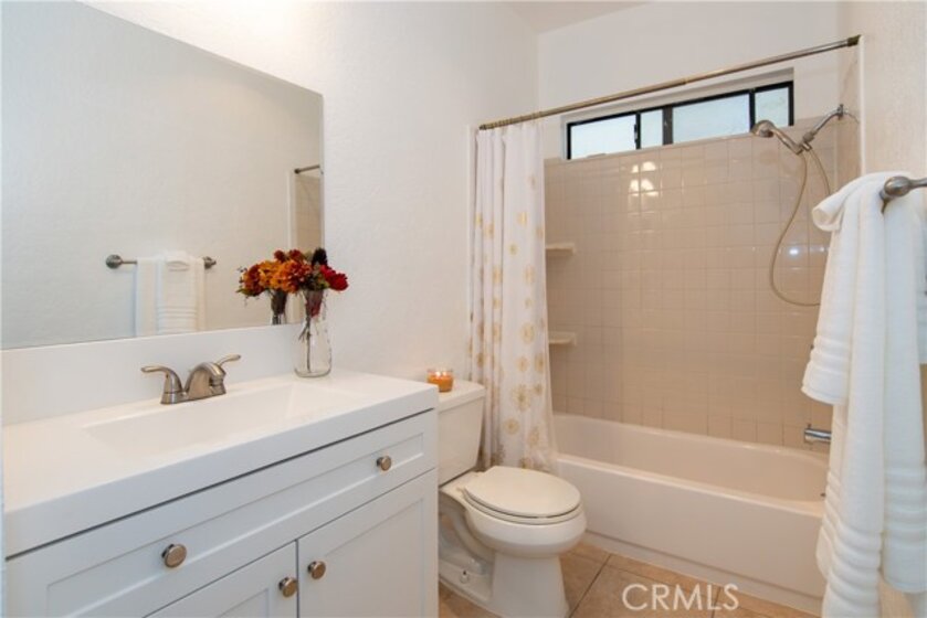 Beautifully upgraded, this 1-bedroom, 1-bath ground floor home features a bright, open layout with soft natural lighting and direct access to a private patio. The living, dining, and spacious bedroom areas flow seamlessly with waterproof wood laminate floors. Kitchen is complemented with granite countertops, all wood cabinets including pantry, tile floors, and stainless steel appliances. Fully updated bathroom features copper piping, vanity, bathtub/shower, toilet, and tile floors. Gated secured entry access and parking includes two tandem carport spaces. Community offers a pool and spa with Low HOA which includes water and trash. Ideally located near shopping malls, restaurants, and access to major freeways.