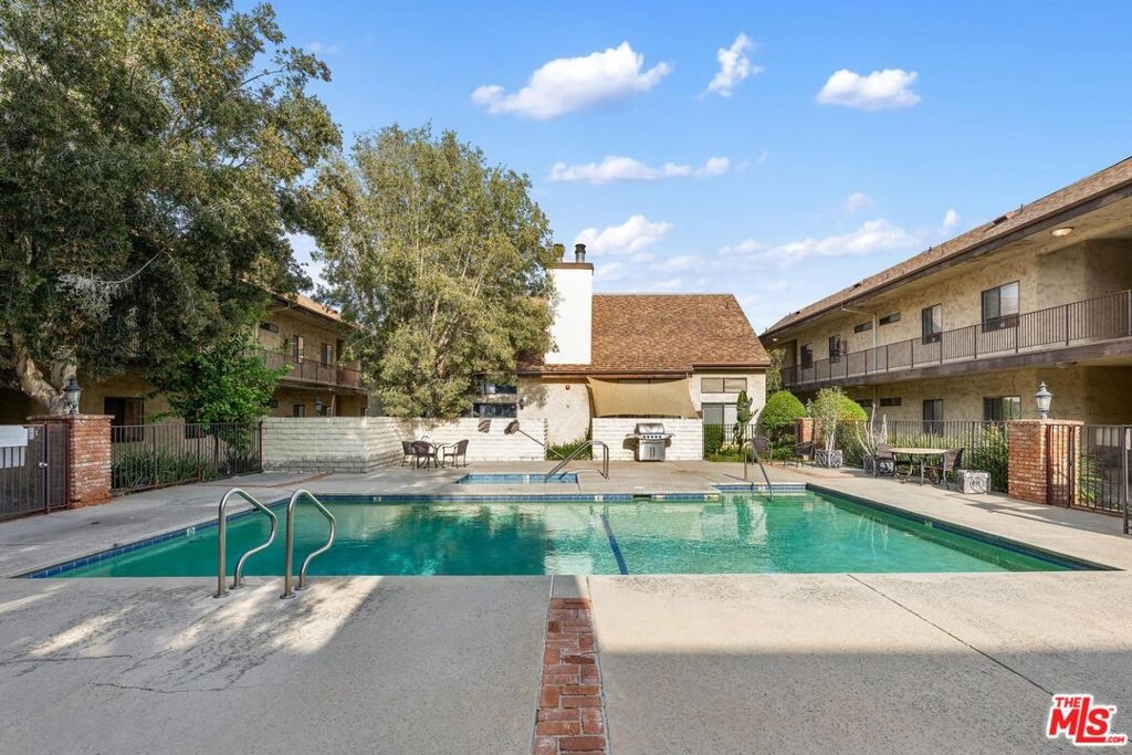 Discover a beautifully updated 2-bedroom, 2-bathroom condo nestled in the serene community of Canoga Park, just moments from the vibrant Topanga Mall. This ground-floor unit boasts an open-concept layout, featuring a unique round dining nook that adds architectural charm.The kitchen is a chef's delight, equipped with a brand-new butcher block countertop and modern appliances. The spacious primary bedroom offers a private en-suite bathroom, ensuring comfort and privacy. Additional highlights include central air conditioning, rin unit washer/dryer, and ample closet space.Residents enjoy access to community amenities such as a pool, spa, and barbecue area, perfect for entertaining or relaxing weekends. The unit includes two side by side parking spaces in a gated lot, providing convenience and security. Situated across from a charming nursery and close to hospitals, schools, and a variety of dining options, this condo offers both tranquility and accessibility. Experience the perfect blend of comfort and location in this Canoga Park gem.