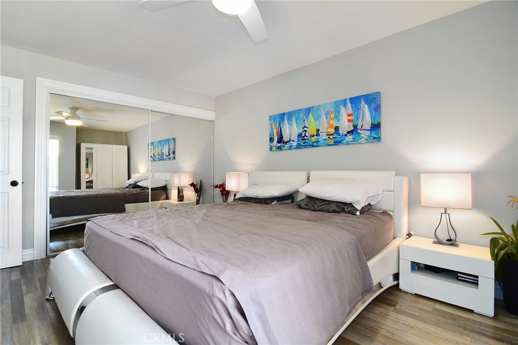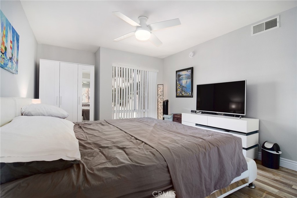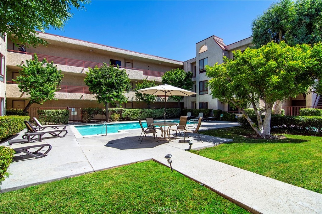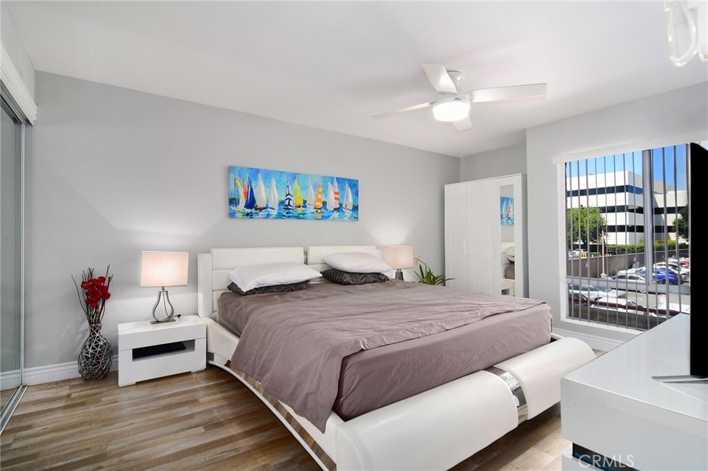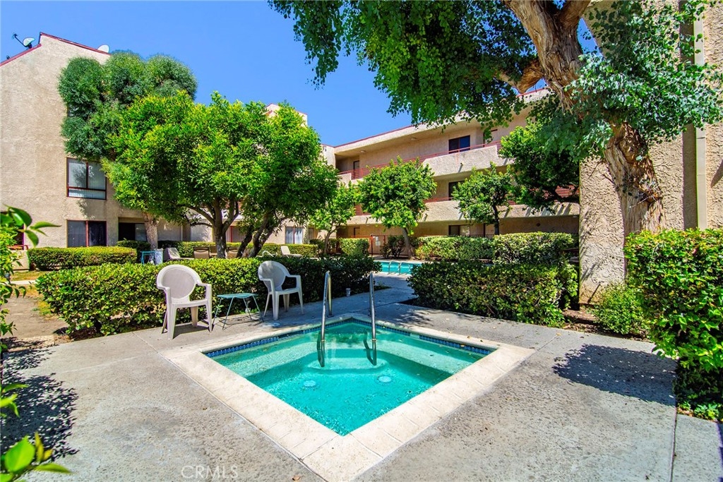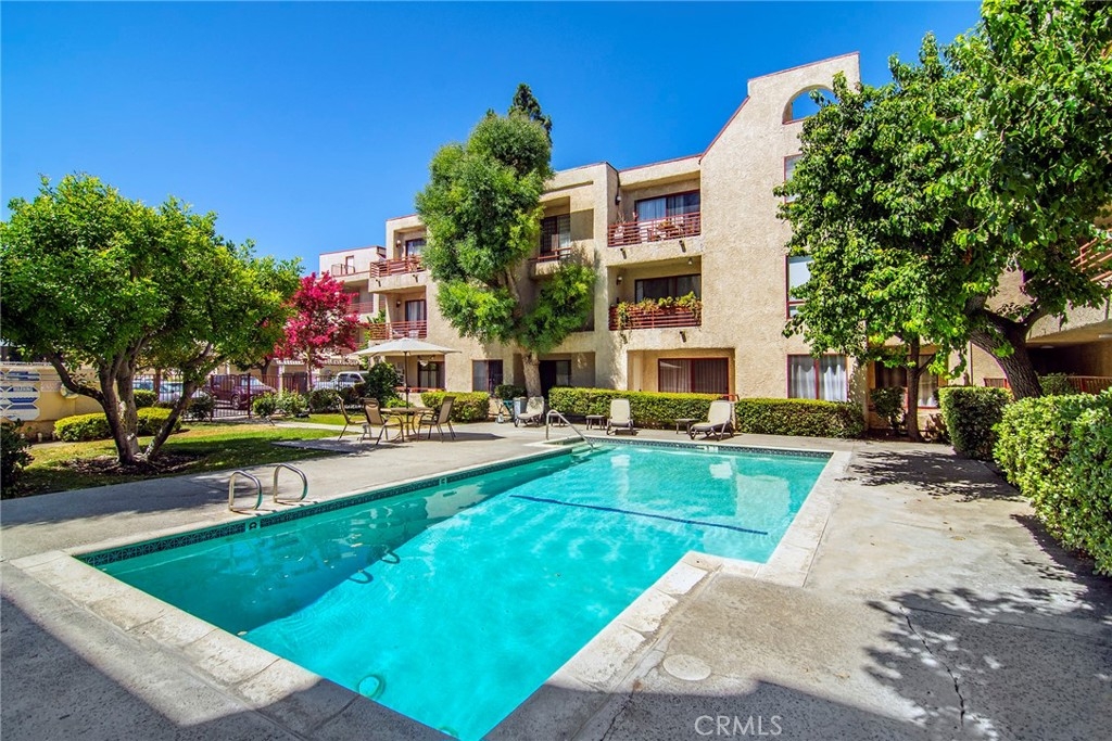 LOCATION!! Literally across the street from Warner Center--walk to Topanga Plaza, restaurants, Amazon Fresh and so much more! 2nd story condo with private balcony offering tree top views, inside laundry, updated flooring, kitchen & baths. Bright and sunny, this unit offers newer Samsung appliances, granite counters, newer wood-like flooring, FULL SIZE laundry, and a spacious open floor plan perfect for entertaining. Super easy to walk home after a night out at one of the many eateries/bars in the area--you wont even need an Uber! Clean, fresh and ready to go! VA APPROVED!!!