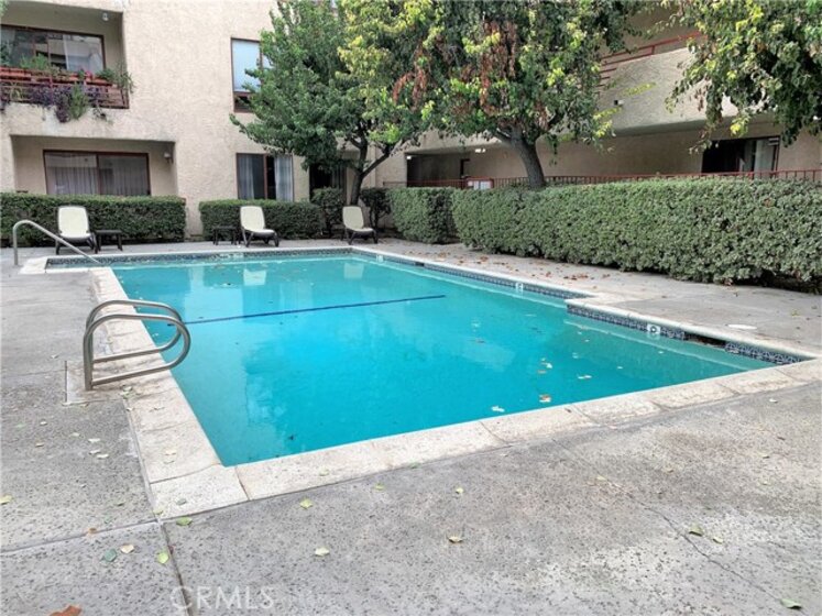 Located on the second floor this lovingly cared for and freshly painted unit offers up a view of the beautiful pool area from the front and a view of the mountains from the living room balcony. The remodeled kitchen includes all appliances and is highlighted by quartz counters and a spacious breakfast bar. A wall of mirrors framed in rich wood provides a more formal dining experience. The living room has sliding glass doors that lead out to a balcony with a convenient storage closet. Brand new carpeting and the open floorplan creates a comfortable living space. The master bedroom has wall to wall closets with wood framed mirrored wardrobe doors. The nook is a most useful space, currently a built-in desk but could be for a crib or a dresser or...... There is a second bedroom and the bathroom has been remodeled with a custom vanity and tiled tub with mosaic accent. The laundry closet houses shelving and a standard sized washer and dryer included in the sale. No worries on those warm valley days, the HVAC is 3 years new and of course there is always that sparkling pool downstairs. There are 2 places to safely park your bike and when you get back from taking advantage of the wonderful bike paths in the area you can soak your weary bones in the bubbling spa. Have a pet? No worries. They take care of that too. To wind things up, it is a quiet, safe, friendly secured environment with security cameras and water and trash is included in your HOA. Great shopping nearby too!