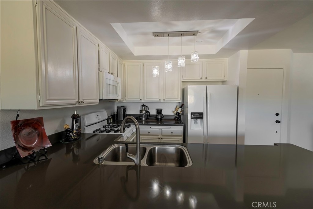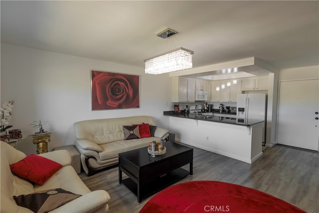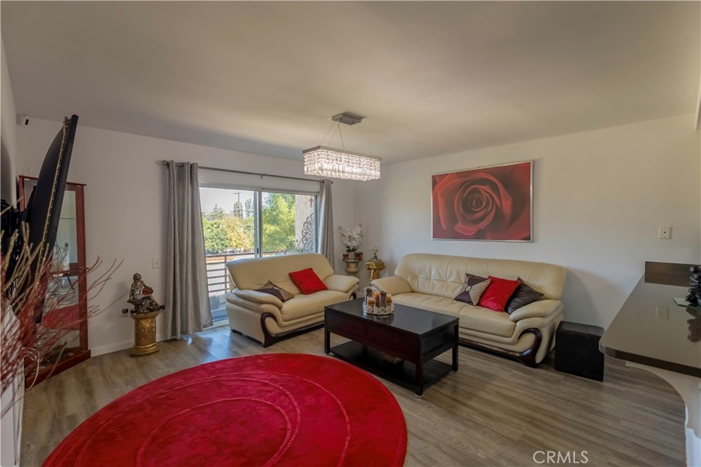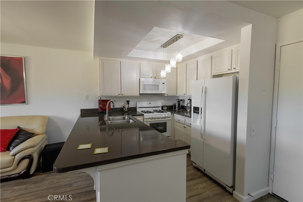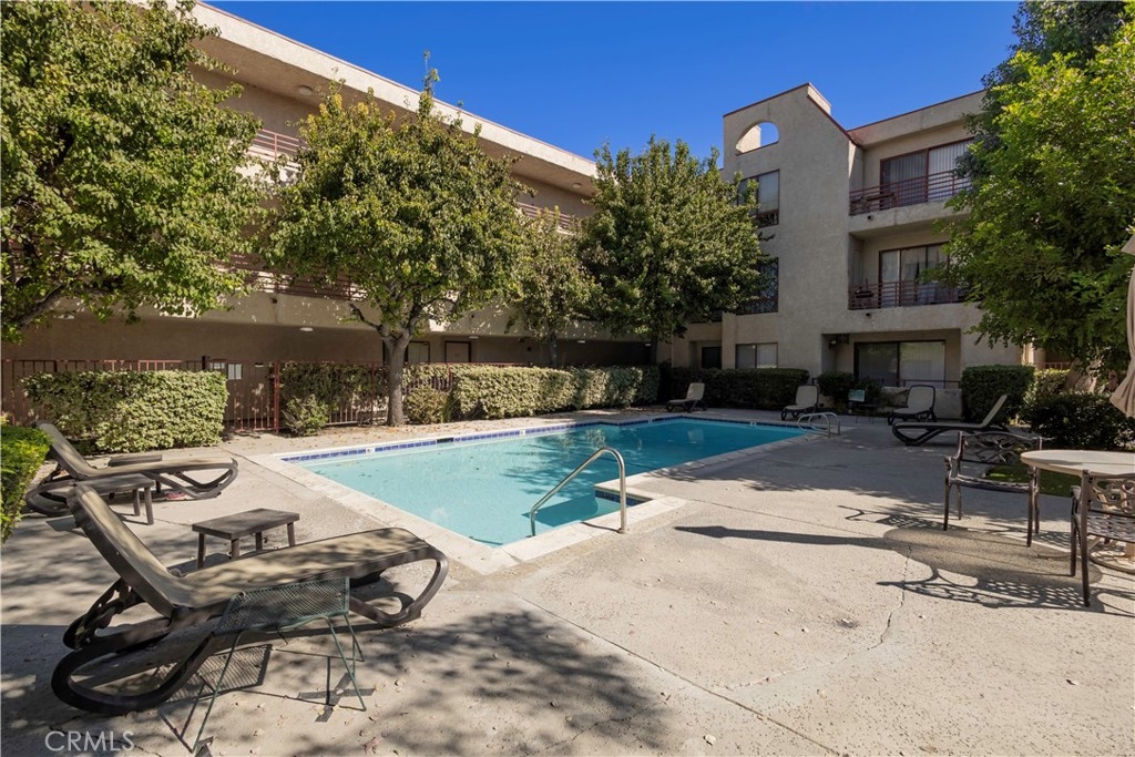 This beautifully updated 2-bedroom, 1-bath condo is move-in ready and located in a secure gated community. It features new Milgard windows and a sliding door, fresh paint throughout, and a private laundry area inside the unit. Every room is filled with natural light, creating a bright and inviting atmosphere. The condo opens up to a balcony that offers serene views of city lights. You will find a tasteful blend of wood laminate flooring in each room. The complex has elevator for ensuring easy movement. The property includes private gated parking with two assigned tandem spaces and low HOA fees. Enjoy access to the community’s sparkling pool and spa. Conveniently located within walking distance of Westfield Mall, The Village at Topanga, public transportation, shops, and popular restaurants like The Cheesecake Factory.