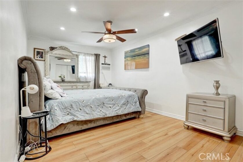 Updated 2 Bedroom, 2 Bathroom condominium offering comfortable living space in a gated community in Canoga Park. Situated on the second floor, this unit offers added privacy with no neighbors below. The owners have lovingly added updates throughout including insulation and recessed lights in the living room and primary suite, tile and laminate flooring throughout, newer heating unit and separate window AC units in each bedroom and dinning area. The focal point is the beautifully updated kitchen which offers all new cabinets, counter tops and gorgeous tiled backsplash with included appliances: stove, oven and microwave. For added convenience, the unit comes equipped with an in-unit washer and dryer. This move-in-ready condo offers comfort, style and a prime location – Come see for yourself!