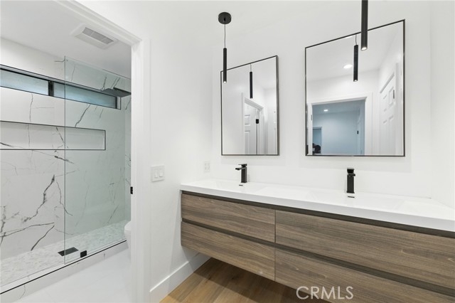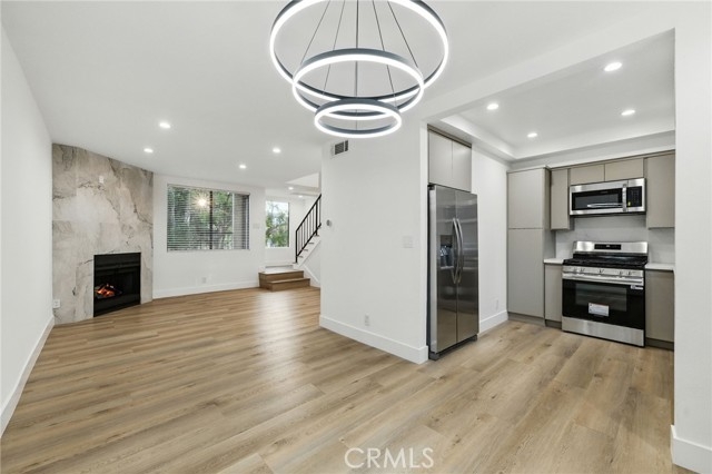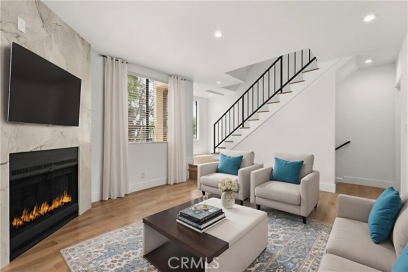 Brand new! 2 bedroom 2 bath townhome with its own attached 2-car garage. Upon entrance you are greeted with a very spacious sized living room featuring an exquisitely tiled floor to ceiling fireplace and floating shelves bar area offering a contemporary ambience. Just upstairs, the master bedroom ensuite resides, which features a large walk-in closet and luxuriously remodeled bathroom with rainfall walk-in shower and plenty of vanity space. This home carries elegant tiling in every room, all illuminated and designer light fixtures, and functional recessed lighting throughout. Additional amenities include a private attached oversized 2-car garage, sparkling community pool, and impeccably maintained grounds. Small complex located on a quiet cul-de-sac street, just moments away from Topanga Mall, The Village, fine shopping and dining, schools, and easy access to the freeway.