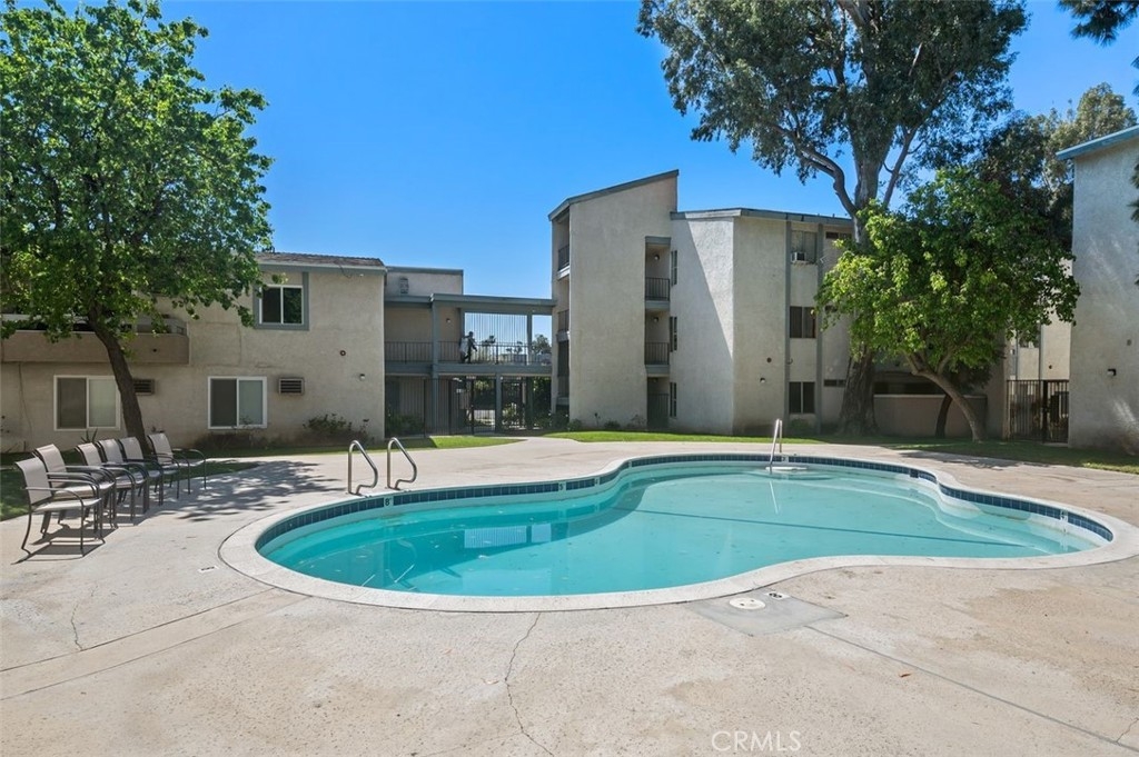 Located in Canoga Park is this gorgeous light and bright top floor unit with an open floor plan. The kitchen features granite countertops and tile flooring. Living room has beautiful vaulted ceilings, a fireplace, and laminate wood flooring. Sliding glass doors off of the living room lead to the large private balcony with partial mountain views. The bedroom offers laminate wood flooring, an en-suite bathroom, and large closet space. Complex amenities include a sparkling pool and spa, gated entry with two parking spaces, elevator and three community laundry areas. Close proximity to the Westfield Topanga shopping center, The Village, and many other shops and restaurants!
