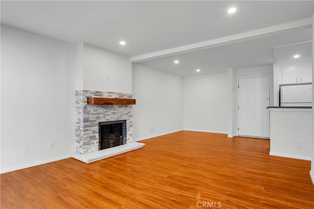 Get ready to move this beautiful unit has been completely updated, The kitchen has brand new countertops and floors it comes with a stove and refrigerator, an updated bathroom with tub and shower, a Fireplace in the center of your living room that looks elegant, laminated hardwood floors that you will love, Resccess lights throughout, freshly painted, and don't miss the sliding door that leads to your private patio balcony ready to set up your own grill, this one you must see in person, great community with secured parking lot with two separate parking spots under the carport. This beautiful unit is within walking distance of restaurants and shopping so make it your priority to come and see it before someone else makes a move.