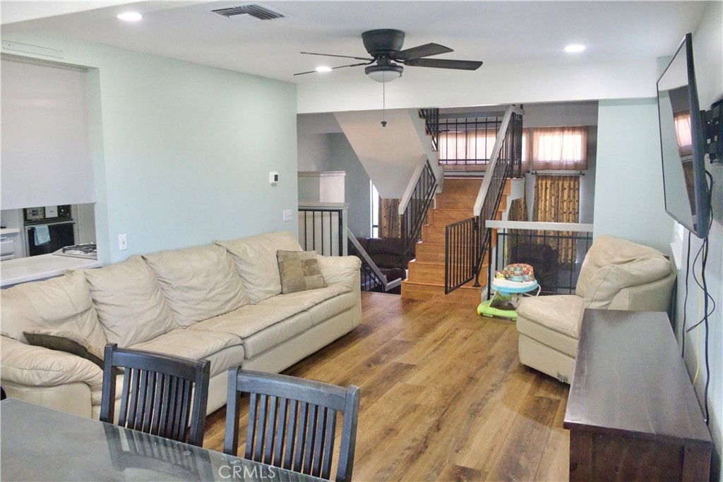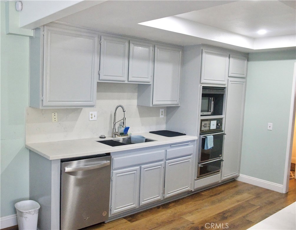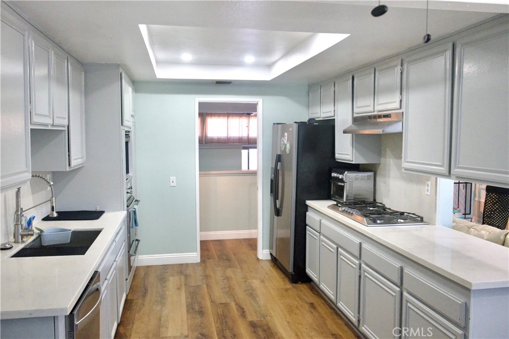 Modern Elegance Tri-Level end unit in Prime Location!! Here you will find beautifully remodeled 3 bedrooms, 2.5 bathrooms, with 2 attached car garage located in the heart of Canoga Park. As you step inside, you will be greeted by stunning newer SPC vinyl/ laminate wood flooring, newly painted interior, new recessed light through out the house & new HVAC unit. This home features open floor plan with 1,784 SF with beautifully remodeled kitchen with quartz kitchen counter top and new kitchen appliances. Master suite w/ vaulted ceilings and a walk-in closet. prime Canoga park location near hospital, schools, Transportations, shopping malls and Restaurants.