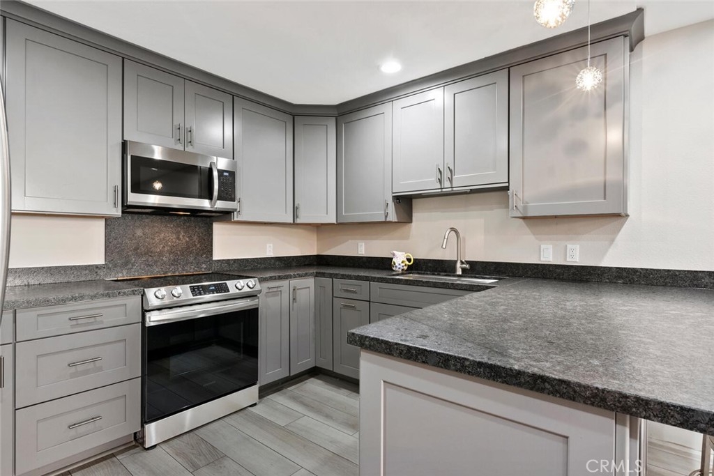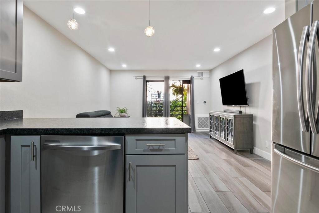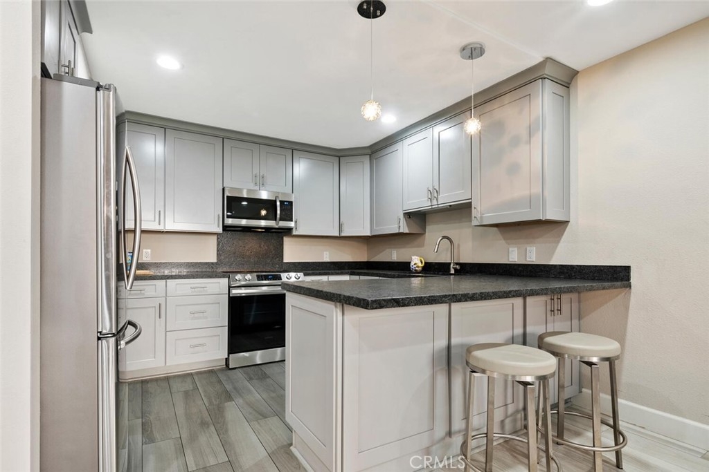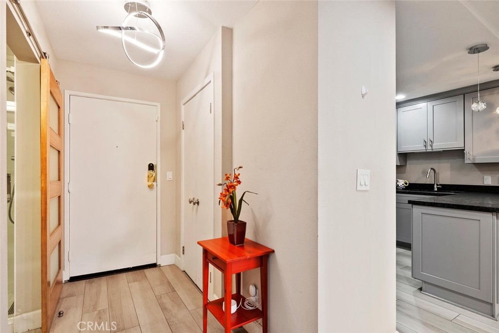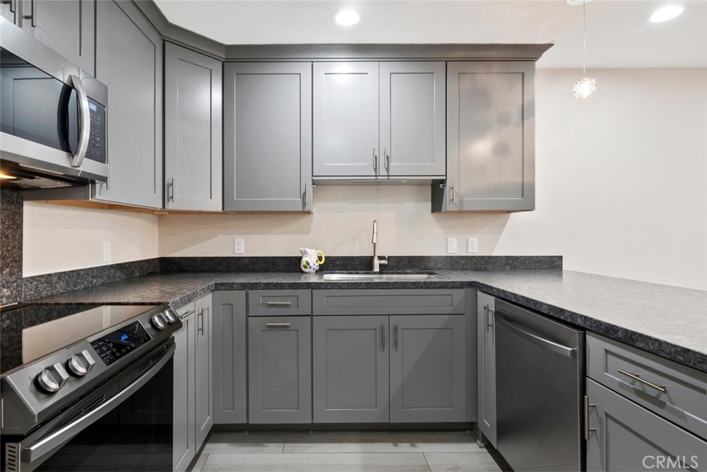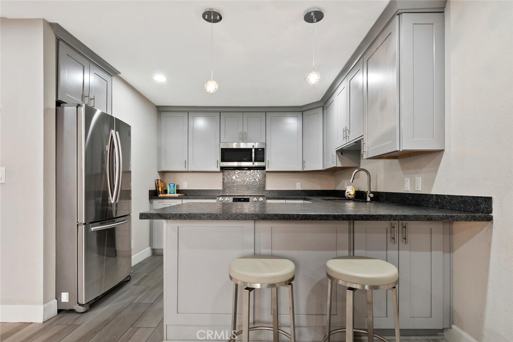 Conveniently located in the Warner Park building, close to shopping, restaurants, entertainment, and public transportation. Remodeled one bedroom condo unit with private balcony, central A/C and heat, and newer tile flooring throughout. The beautiful kitchen includes a stainless steel refrigerator and appliances, and pendant lights. Spacious modern bathroom with newer shower and barn doors. Community pool, Spa. Laundry conveniently located just a few steps down the hallway. The building has an elevator for easy access to all levels. Two assigned parking spaces. Great Deal!