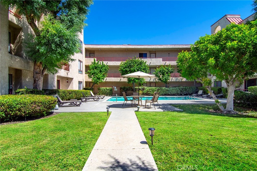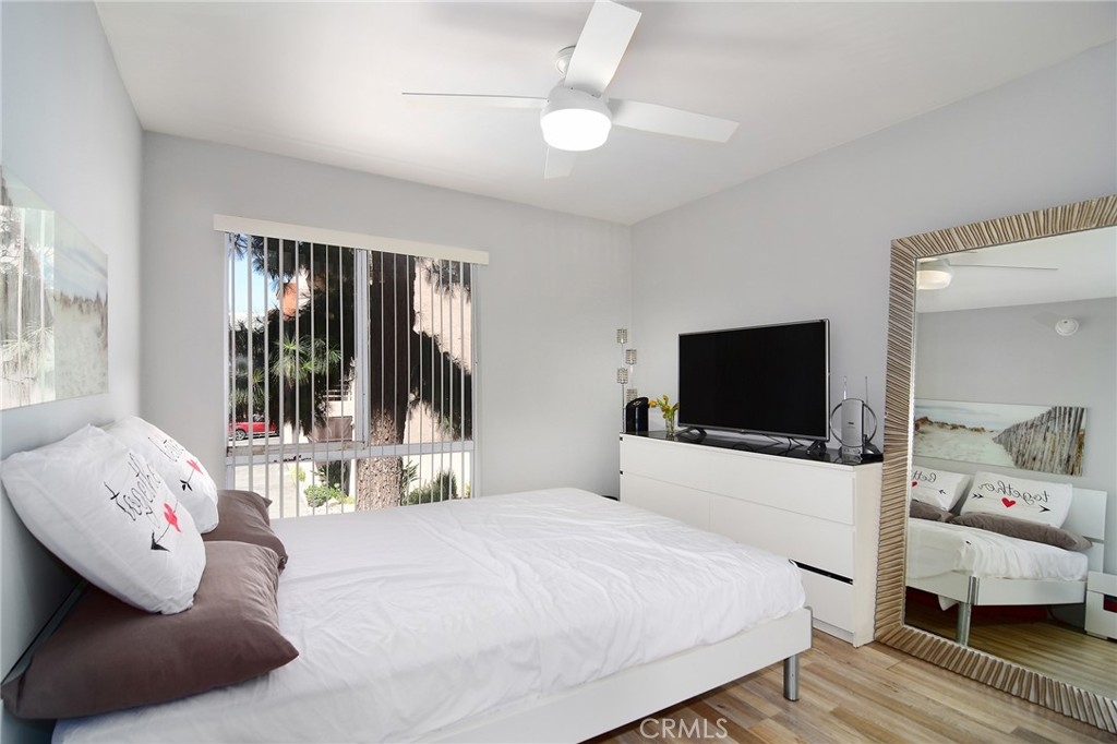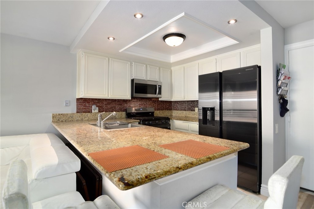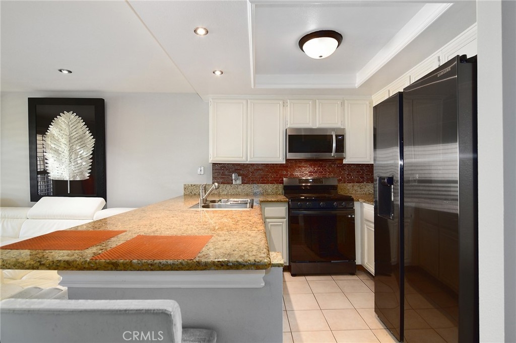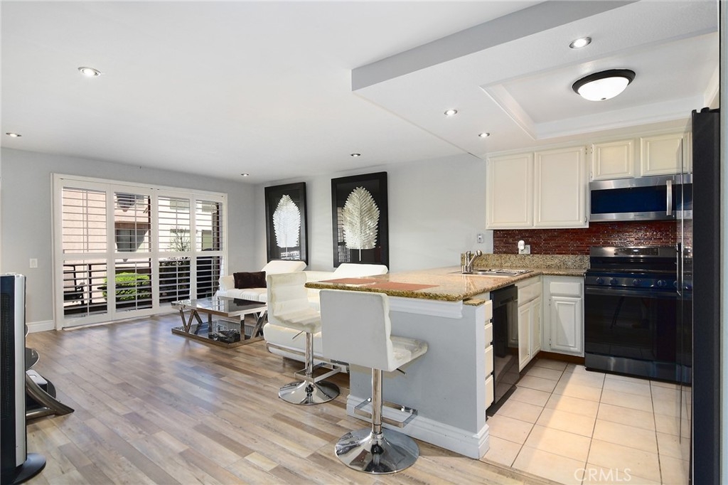 LOCATION!! Literally across the street from Warner Center--walk to Topanga Plaza, restaurants, Amazon Fresh and so much more! 2nd story condo with private balcony offering tree top views, inside laundry, updated flooring, kitchen & baths. Bright and sunny, this unit offers newer Samsung appliances, granite counters, newer wood-like flooring, FULL SIZE laundry, and a spacious open floor plan perfect for entertaining. Super easy to walk home after a night out at one of the many eateries/bars in the area--you wont even need an Uber! Clean, fresh and ready to go! VA APPROVED!!!